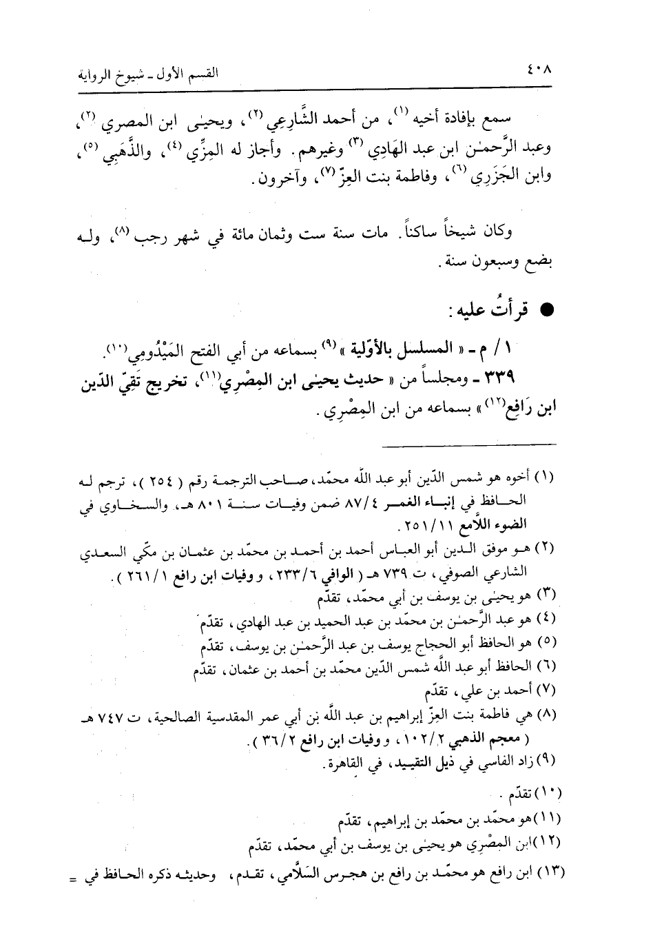 339 - ومجلسا من "حديث يحيى ابن المصرى، تخرج تقى الدين ابن رافع" بسماعه من ابن المصري.