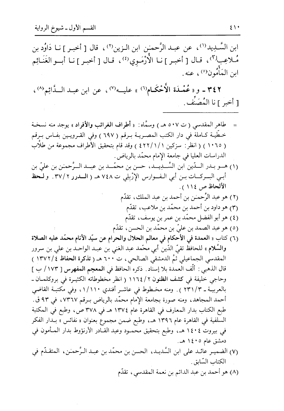 342 - و"عمدة الأحكام" عليه، عن ابن عبد الدائم، [أخبر] نا المصنف.