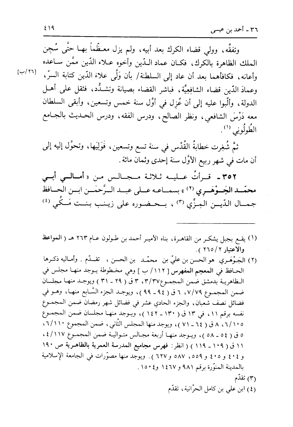 352 - قرأت عليه ثلاثة مجالس من "أمالى أبى محمد الجوهري" بسماعه على عبد الرحمن ابن الحافظ جمال الدين المزى، بحضوره على زينب بنت مكي