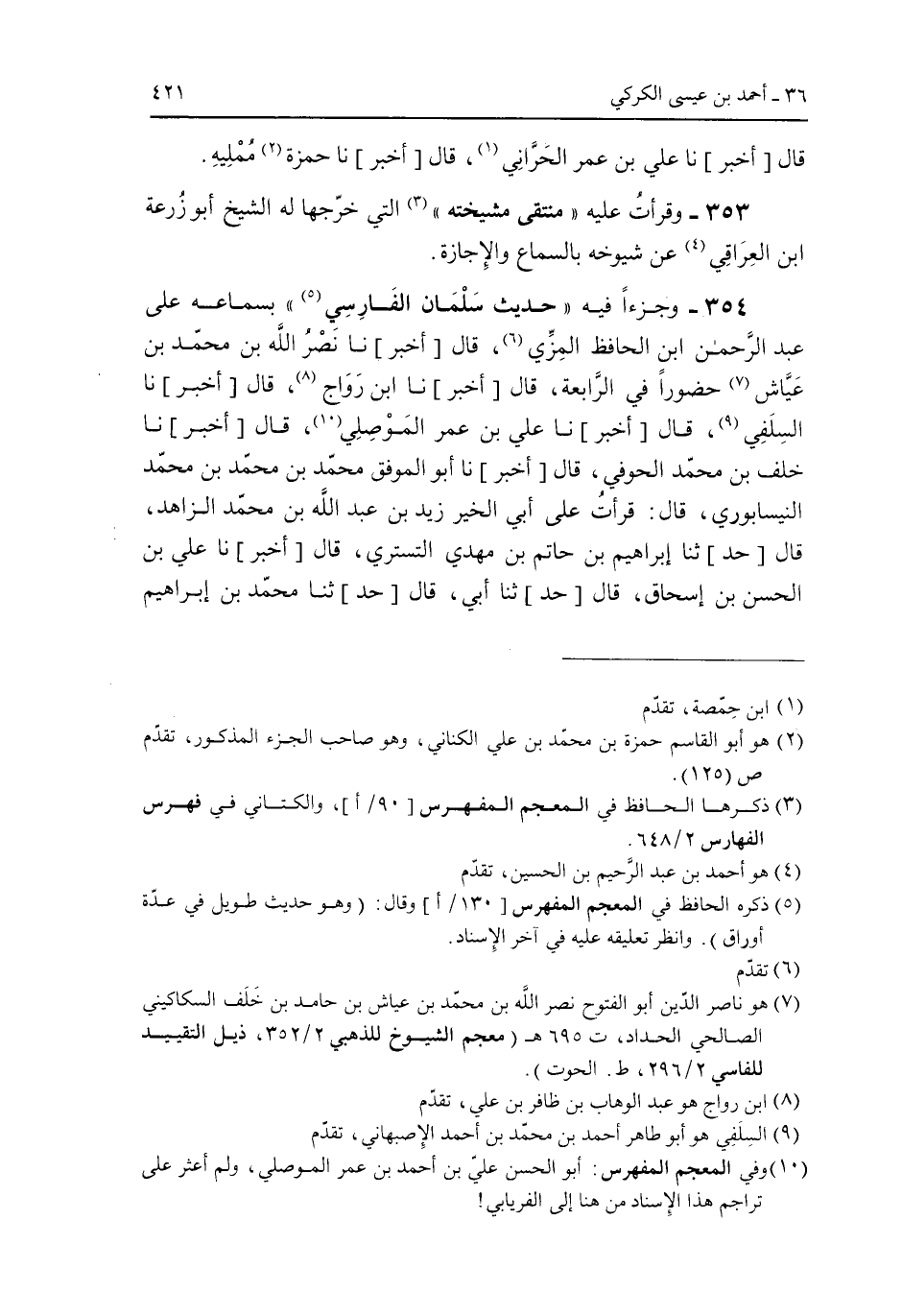 353 - وجزءا فيه "حديث سلمان الفارسي" بسماعه على عبد الرحمن ابن الحافظ المزى، قال [أخبر] نا نصر الله بن محمد بن عياش حضورا فى الرابعة، قال [أخبر] نا ابن رواج، قال [أخبر] ناالسلفي، قال [أخبر] نا على بن عمر الموصلى، قال [أخبر] نا خلف بن محمد الحوفى، قال [أخبر] نا أبو الموفق محمد بن محمد بن محمد النيسابورى، قال: قرأت على أبى الخير زيد بن عبد الله بن محمد الزاهد، قال [حد] ثنا إبراهيم بن حاتم بن مهدى التسترى، قال [أخبر] نا على بن الحسن بن إسحاق، قال [حد] ثنا أبى، قال [حد] ثنا محمد بن إبراهيم