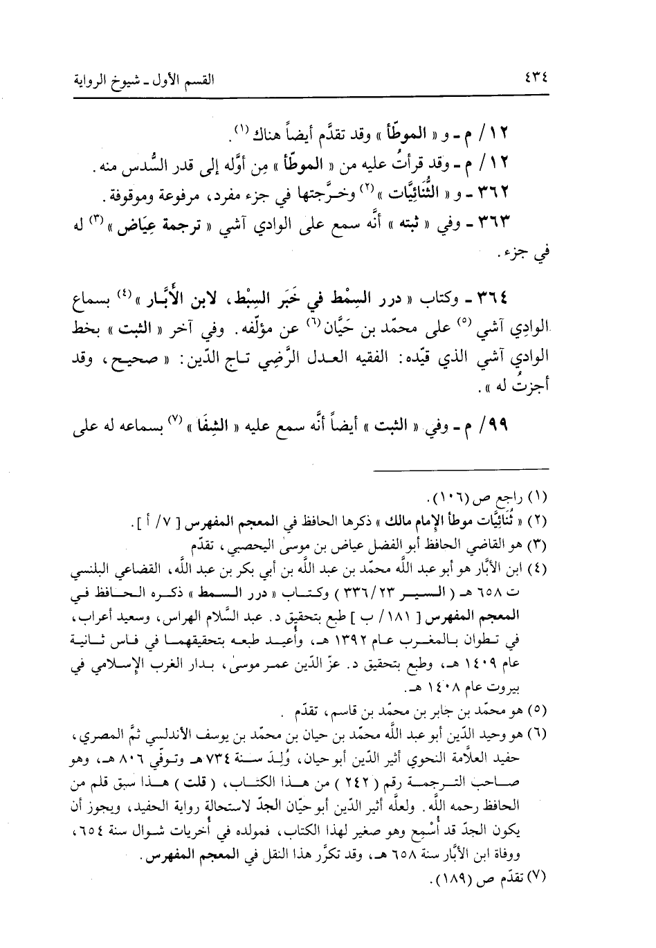 364 - وكتاب "درر السمط في خبر السبط لان الأبار" بسماع الوادي آشي على محمد بن حيان عن مؤلفة. وفي آخر "الثبت" بخط الوادي آشي الذي قيده: الفقه العادل الرضضي تاج الدين: "صحيح وقد أجزت له".