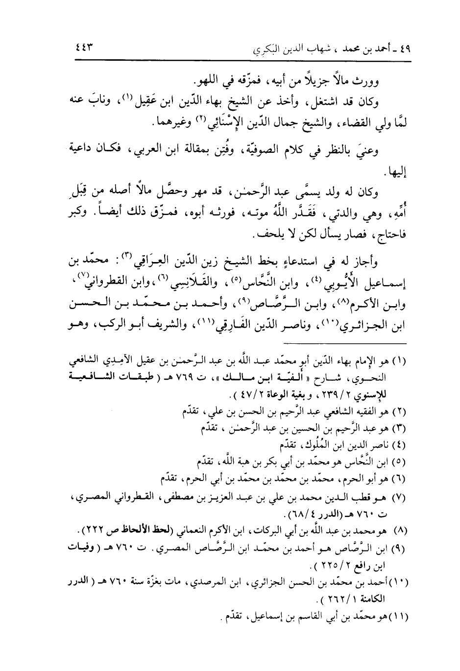وكان له ولد يسمى عبد الرحمن قد مهر وحصل مالاً أصله من قبل أمه وهي والدتي فقدر الله موته فورثه أبوه فمزق ذلك أيضاً وكبر فاحتاج فصار يسأل لكن لا يلحف.