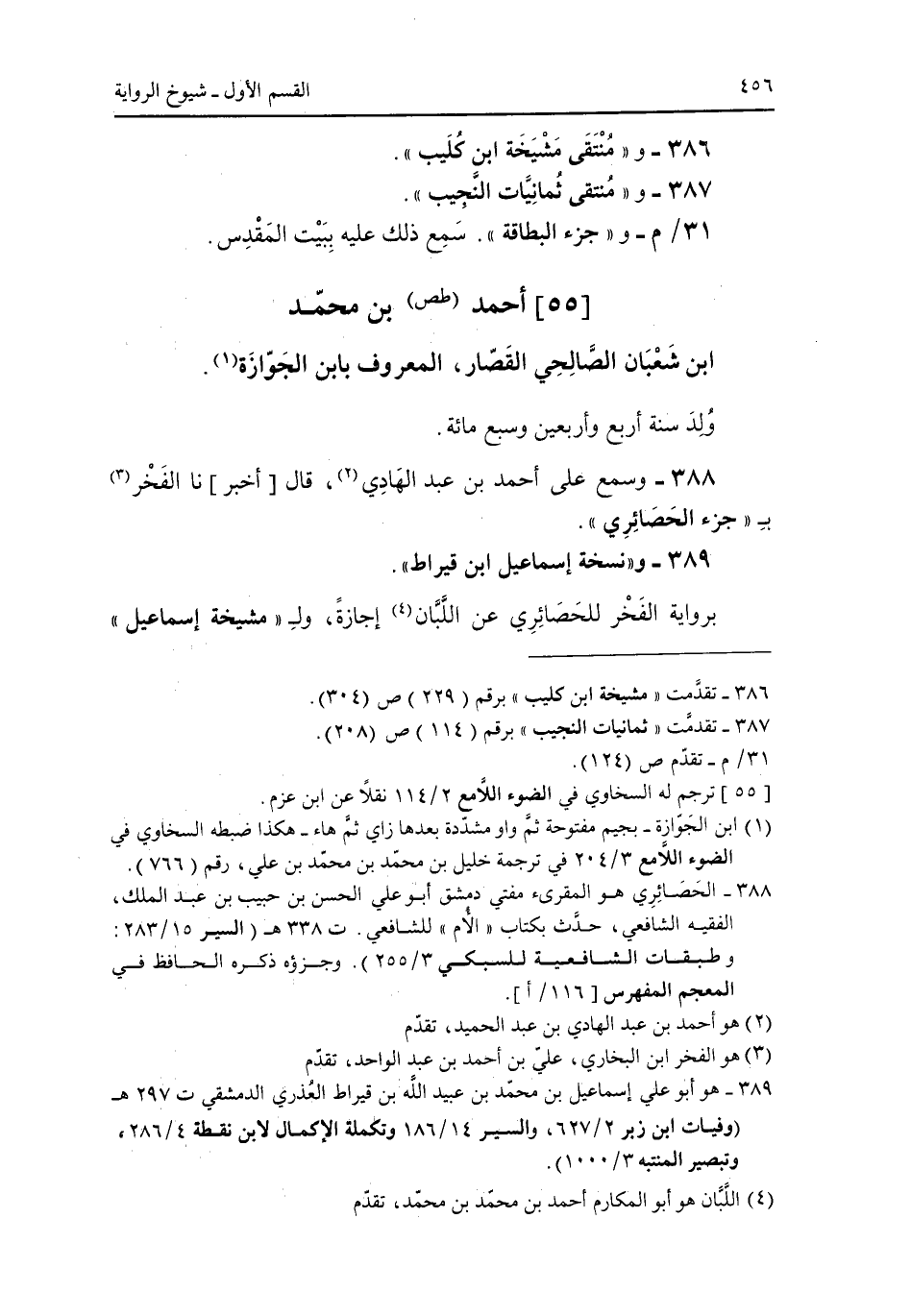 388 - وسمع على أحمد بن عبد الهادي الفخر بـ"جزء الحصائري"