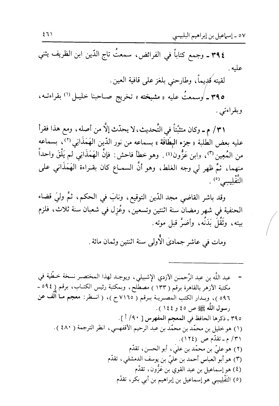 394 - وجمع كتاباً في الفرائض سمعت تاج الدين ابن الظريف يثني عليه.