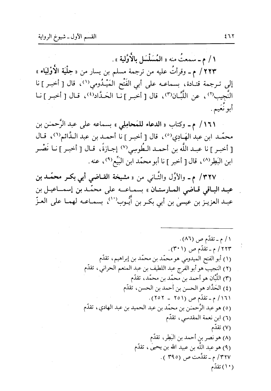 223/م- وقرأت عليه من ترجمة مسلم بن يسار من "حلية الاولياء" إلى ترجمة قتادة بسماعه على أبي الفتح الميدومي قال [أخبر] نا النجيب عن اللبان قال [أخبر] نا الحداد قال [أخبر] نا أبو نعيم.