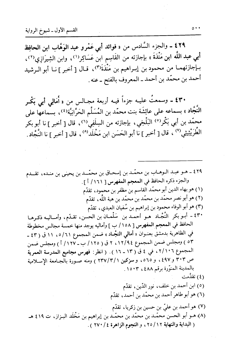 429 - والجزء السادس من "فوائد أبي عرو عبد الوهاب ابن الحافظ أبي عبد الله ابن مندة" بإجازته من القاسم بن عساكر وابن الشيرازي بإجازتهما من محمود بن إبراهيم بن مندة قال [أخبر] نا أبو الرشيد أحمد بن محمد بن أحمد -المعروف بالفتح- عنه.