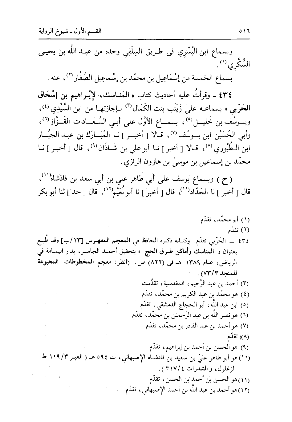 434 - قرأت عليه احاديث كتاب "المناسك لإبراهيم بن إسحاق الحربي" بسماعه على زينب بنت الكمال بإجازتها من ابن السيدي ويوسف بن خليل ابن يوسف قالا [أخبر] نا المبارك بن عبد الجبار ابن الطُيُوري قالا [أخبر] نا أبو علىي بن شاذان قال [أخبر] نا محمد بن إسماعيل بن موسى بن هارون الرازي.