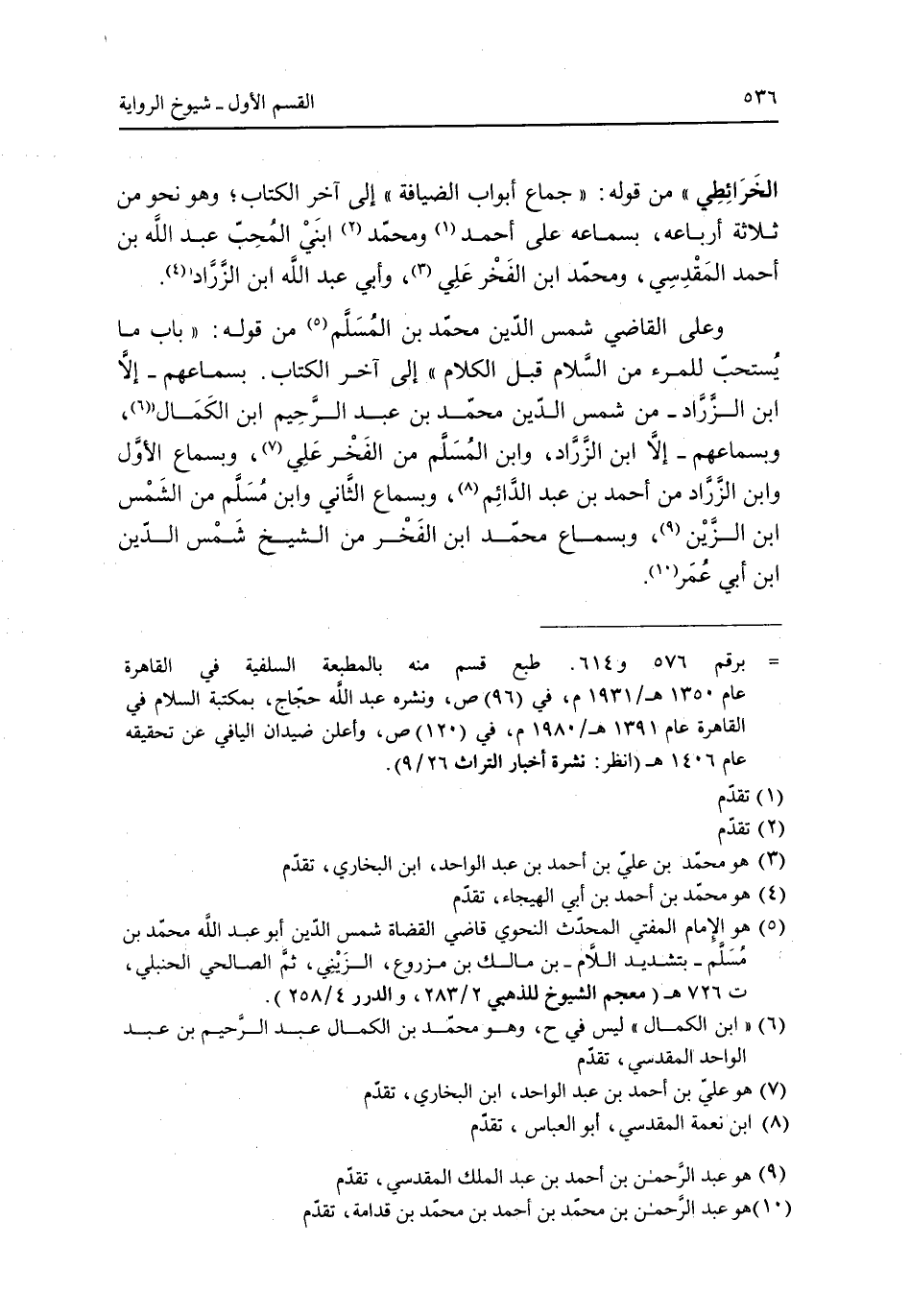 الخرائطي" من قوله: "جماع أبواب الضيافة" إلى ىخر الكتاب وهو نحو من ثلاثة أرباع بسماعه على أحمد ومحمد ابني المحب عبد الله بن أحمد المقدسي ومحمد ابن الفخر علي وأبي عبد الله ابن الزارد وعلى القاضي شمس الدين محمد بن المُسلم من قوله: "باب يستحب للمرء من السلام قبل الكلام" إلى آخر الكتاب. بسماعهم -إلا ابن الزارد- من شمس الدين محمد بن عبد الرحيم بن الكمال وبسماعهم -إلا ابن الزارد وابن المسلم من الفخر علي وبسماع الأول وابن الزارد من أحمد بن عبد الدائم وبسماع الثاني وابن مسلم من الشمس ابن الزين وبسماع محمد ابن الفخر من الشيخ شمس الدين ابن أبي عمر.