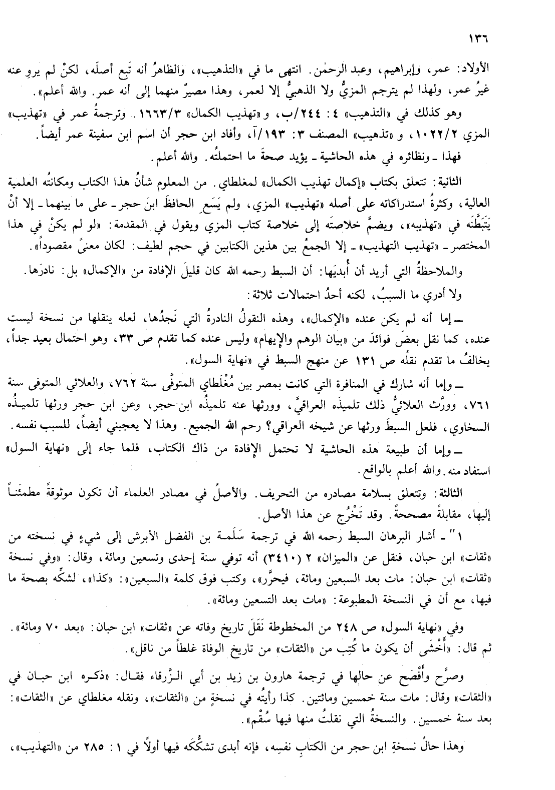 الثانية: تتعلق بكتاب " إكمال تهذيب الكمال " لمغلطاي.