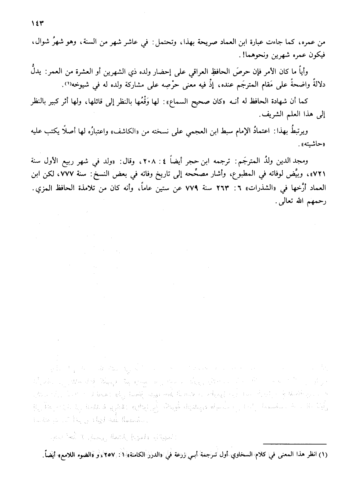 وأيا ما كان الامر فان حرص الحافظ العراقي على إحضار ولده ذي الشهرين أو العشرة من العمر: يدل دلالة واضحة على مقام المترجم عنده، إذ فيه معنى حرصه على مشاركة ولده له في شيوخه