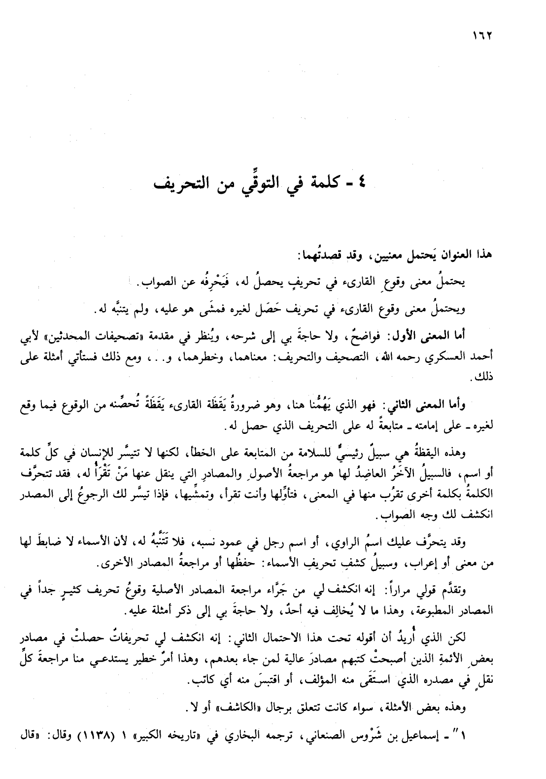وأما المعنى الثاني: فهو الذي يهمنا هنا، وهو ضرورة يقظة القارئ يقظة تحصنه من الوقع فيما وقع لغيره - على إمامته - متابعة له على التحريف الذي حصل له.