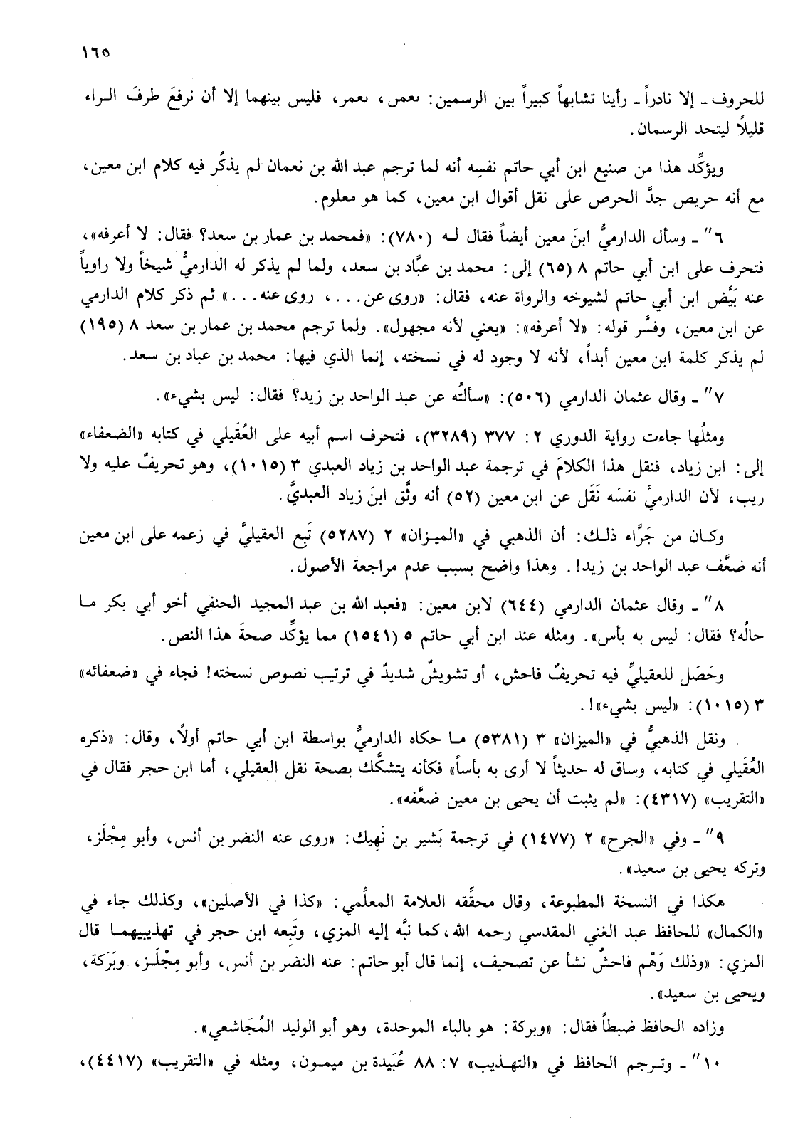 ويؤكد هذا من صنيع ابن أبي حاتم نفسه أنه لما ترم عبد الله بن نعمان لم يذكر فيه كلام ابن معين، مع أنه حريص جدا الحرص على نقل أقوال ابن معين، كما هو معلوم.
