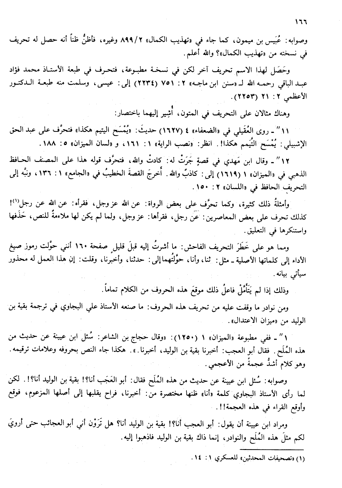 ومن نوادر ما وقفت عليه من تحريف هذه الحروف: ما صنعه الاستاذ علي البجاوي في ترجمة بقية بن الوليد من " الميزان الاعتدل ".