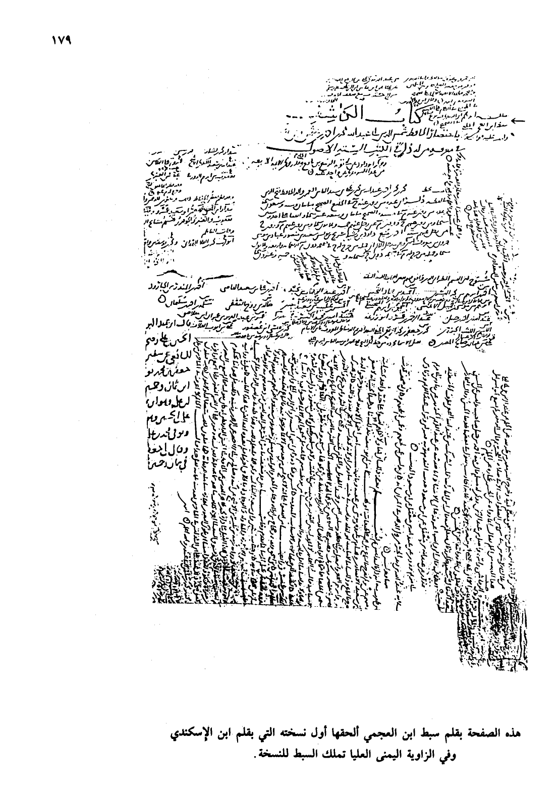 هذه الصفحة بقلم سبط ابن العجمي ألحقها أول نسخته التي بقلم ابن الاسكندي وفي الزاوية اليمنى العليا تملك السبط للنسخة.