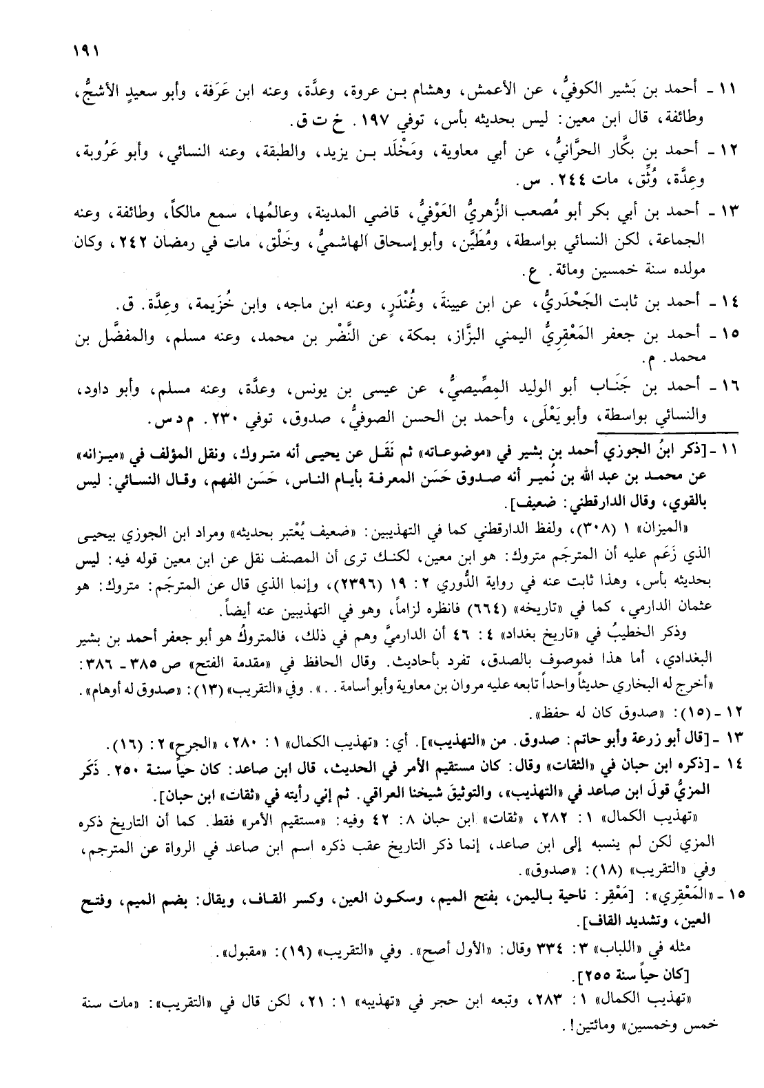 11- أحمد بن بشير الكوفي عن الاعمش وهشام بن عروة وعدو عنه بن عرفة وأبو سعيد الاشج وطائفة قال بن معين ليس بحديثه بأس توفي 197 خ تق