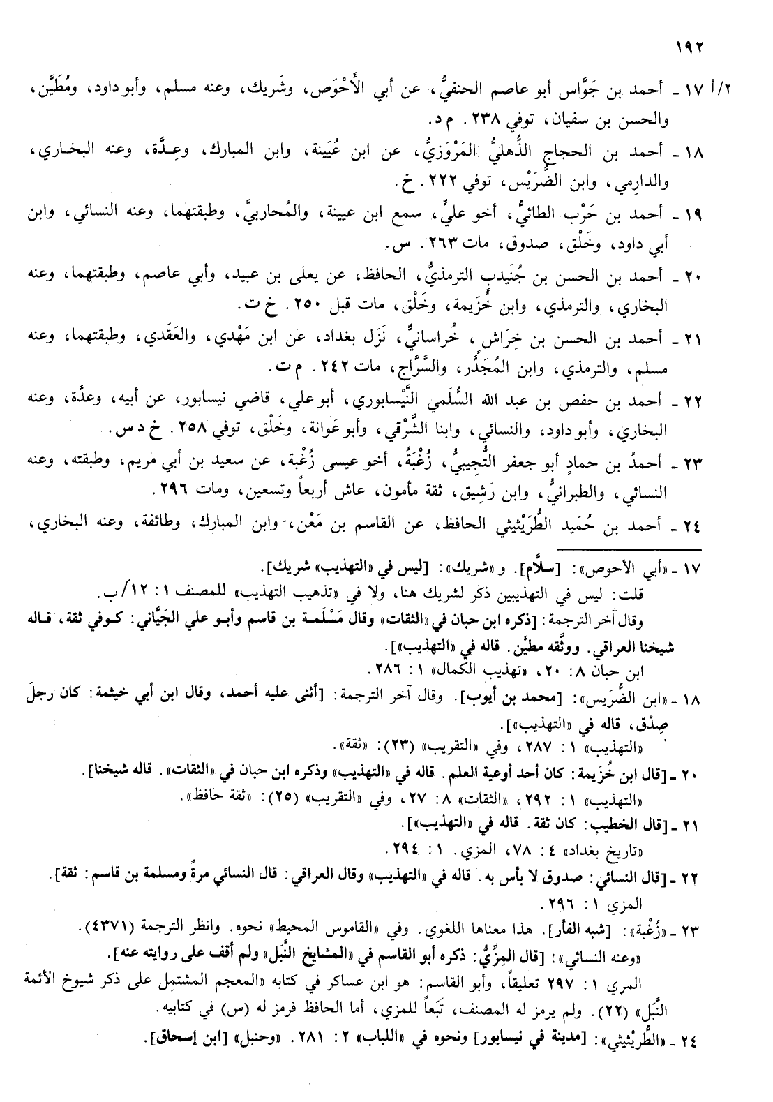 19- أحمد بن حرب الطائي أخو علي سمع بن عيينة والمحاربي وطبقتهما وعنه النسائي وابن أبي داود وخلق صدوق مات 263 س