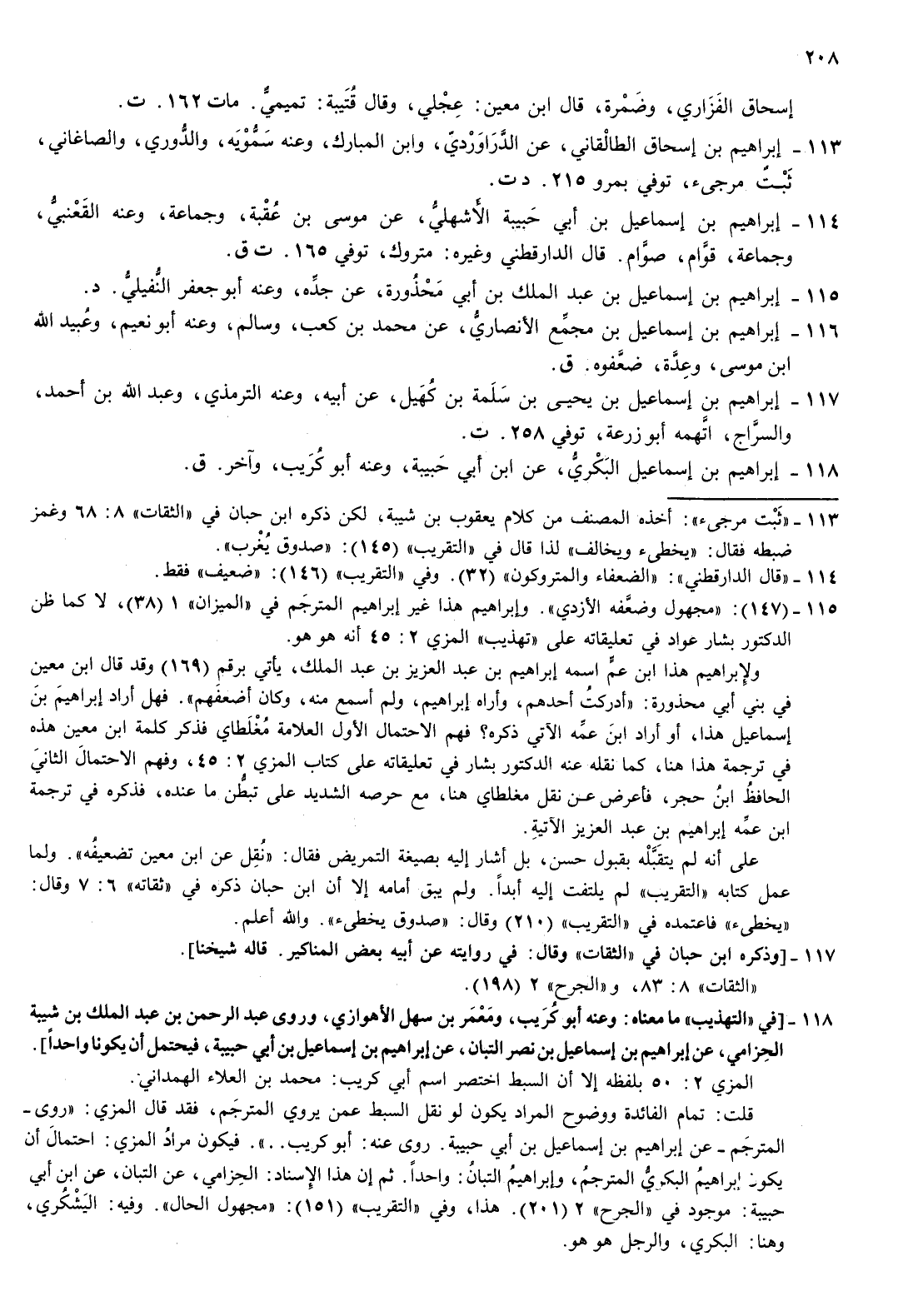 113- إبراهيم بن إسحاق الطالقاني عن الدراوردي وابن المبارك وعنه سمويه والدوري والصاغاني ثبت مرجئ توفي بمرو 215 د ت