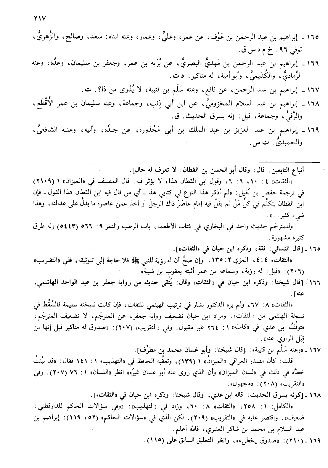 165- إبراهيم بن عبد الرحمن بن عوف عن عمر وعلي وعمار وعنه ابناه سعد وصالح والزهري توفي 96 خ م د س ق