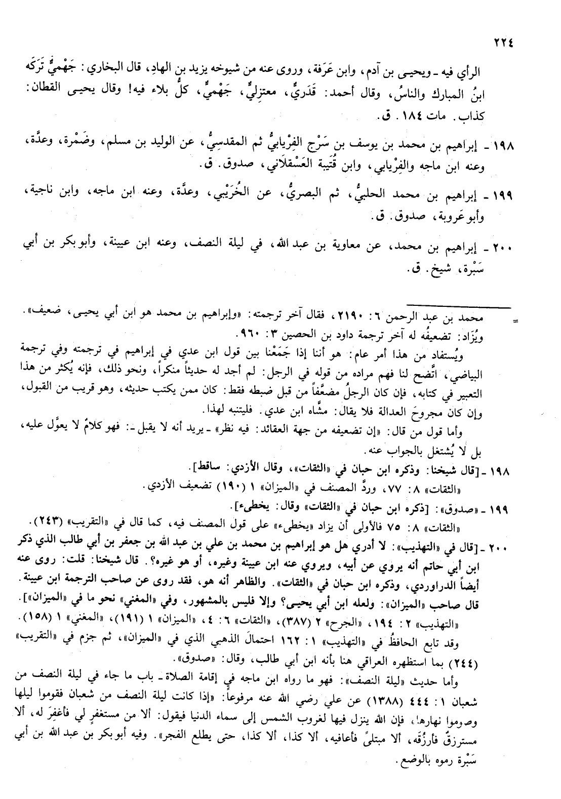 200- إبراهيم بن محمد عن معاوية بن عبد الله في ليلة النصف وعنه بن عيينة وأبو بكر بن أبي سبرة شيخ ق