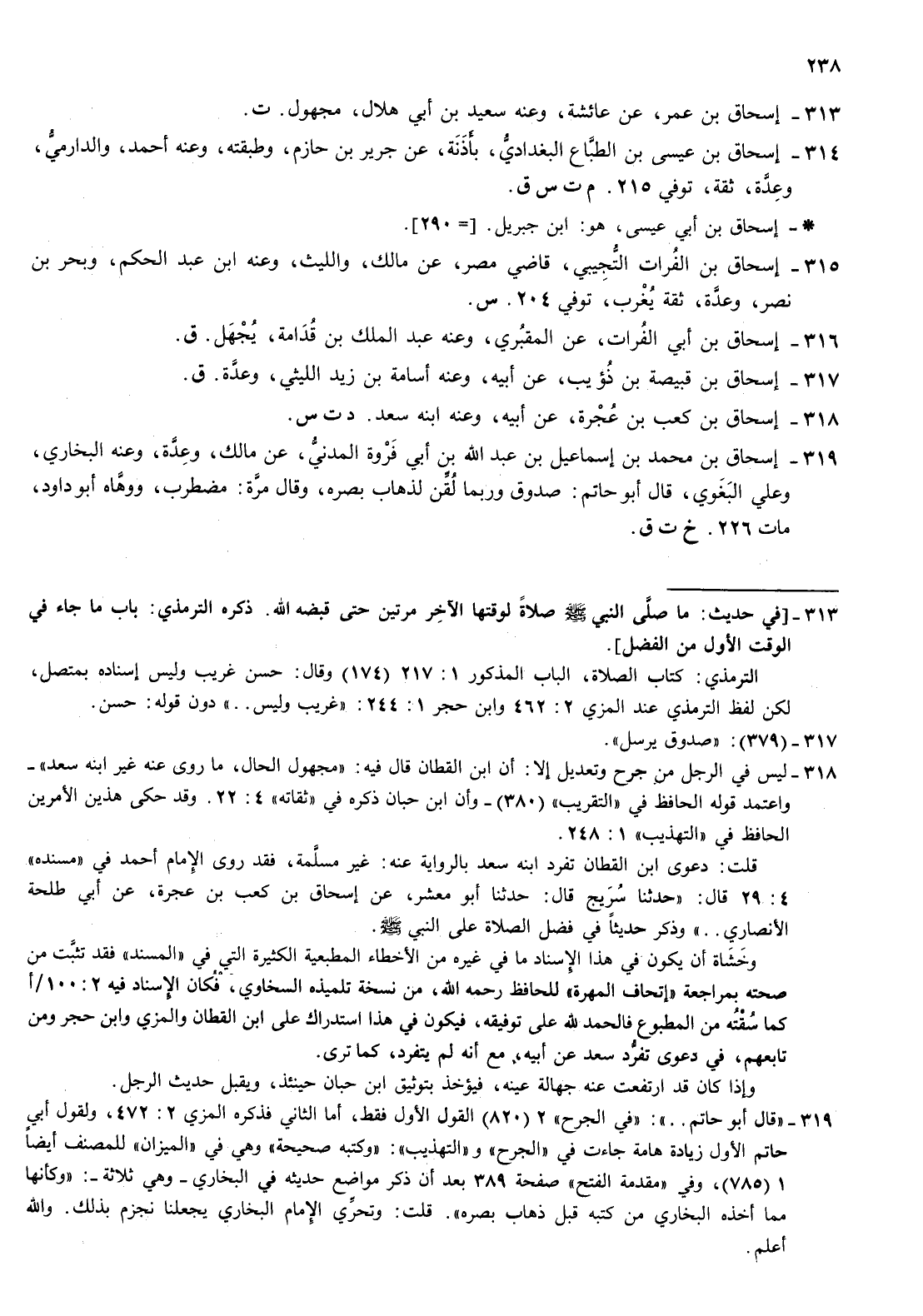 314- إسحاق بن عيسى بن الطباع البغدادي بأذنة عن جرير بن حازم وطبقته وعنه أحمد والدارمي