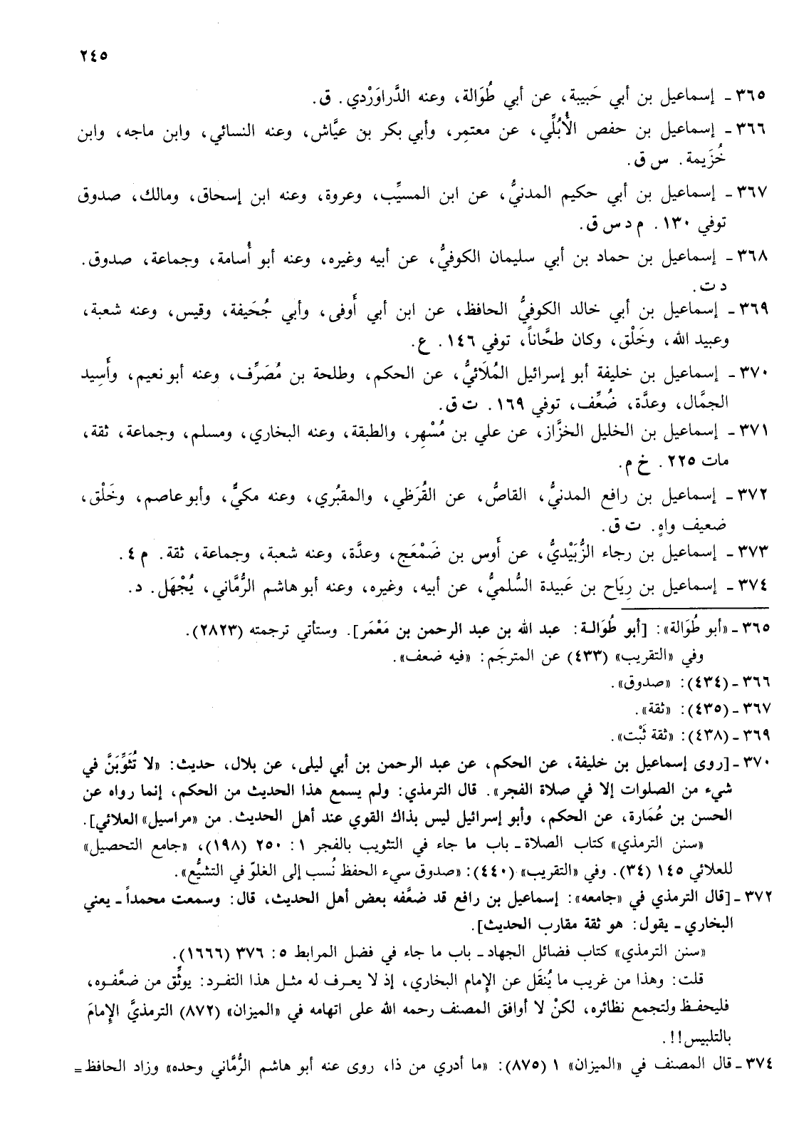 369- إسماعيل بن أبي خالد الكوفي الحافظ عن بن أبي أوفى وأبي جحيفة وقيس وعنه شعبة وعبيد الله وخلق وكان طحانا توفي 146 ع
