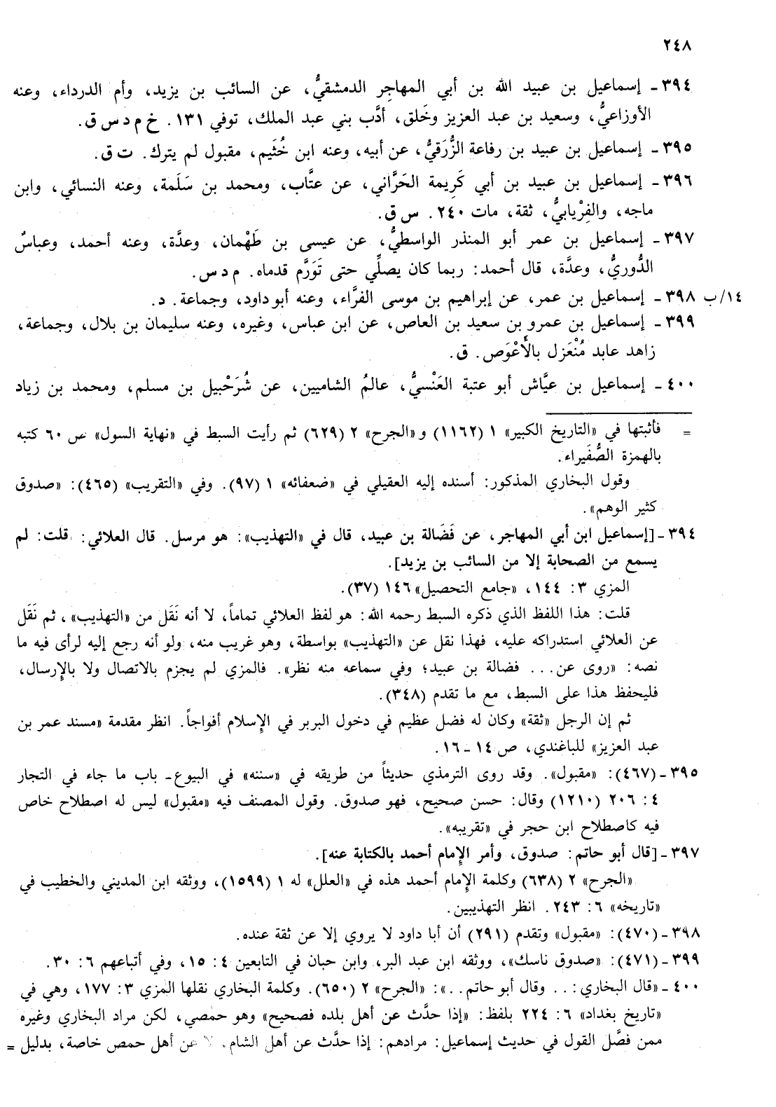400- إسماعيل بن عياش أبو عتبة العنسي عالم الشاميين عن شرحبيل بن مسلم ومحمد بن زياد