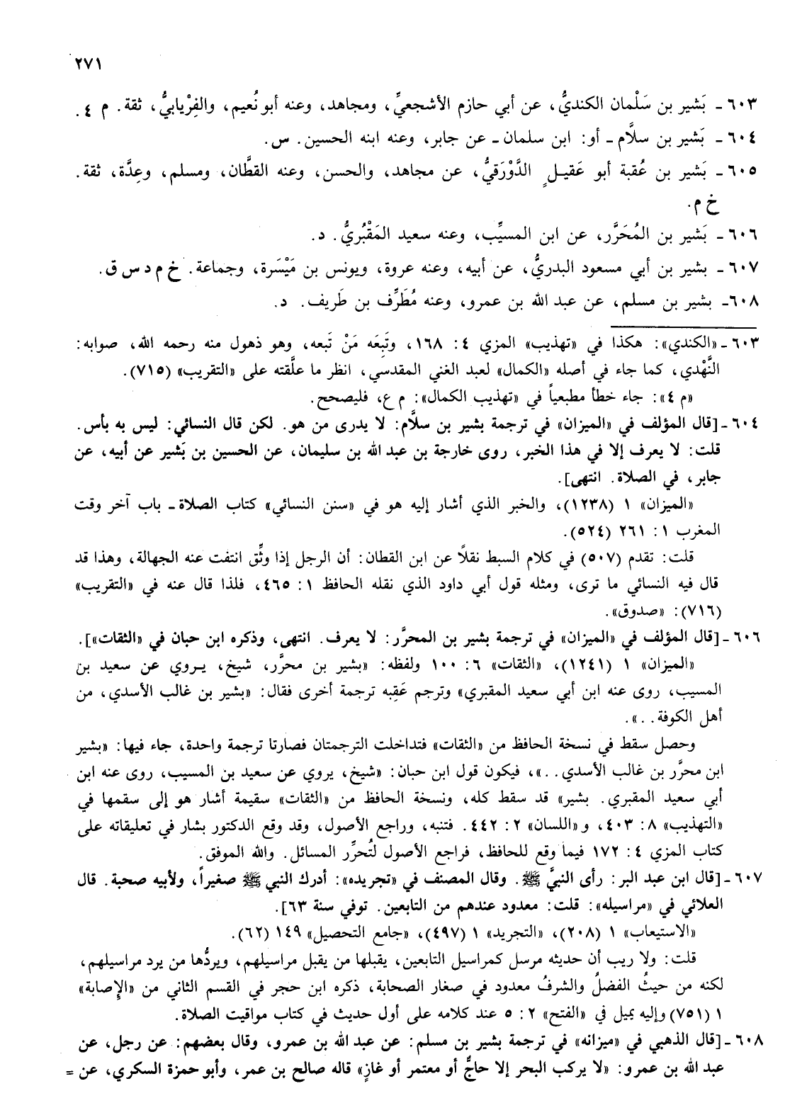 603- بشير بن سلمان الكندي عن أبي حازم الاشجعي ومجاهد وعنه أبو نعيم والفريابي ثقة م 4