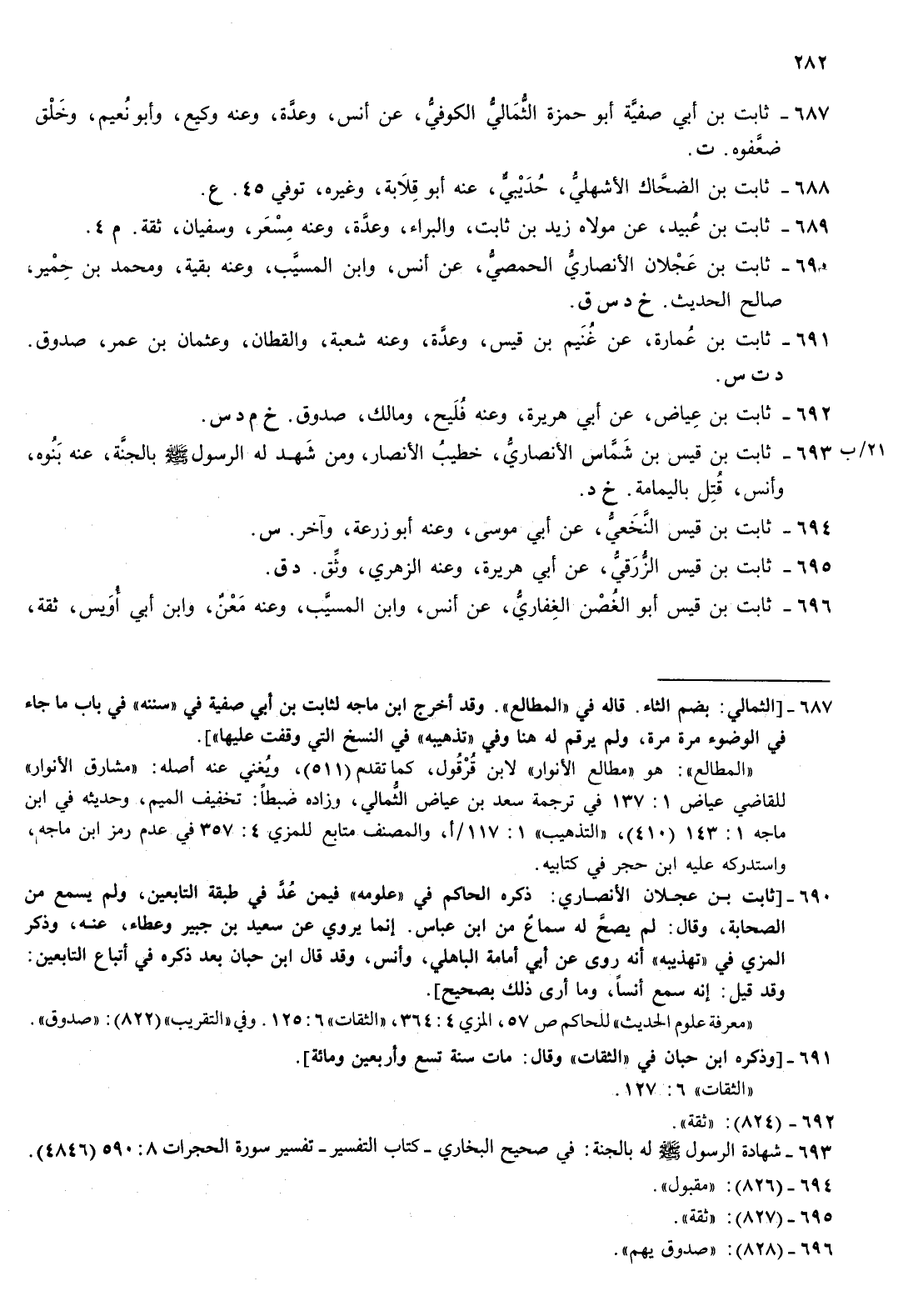 691- ثابت بن عمارة عن غنيم بن قيس وعدة وعنه شعبة والقطان وعثمان بن عمر صدوق د ت س