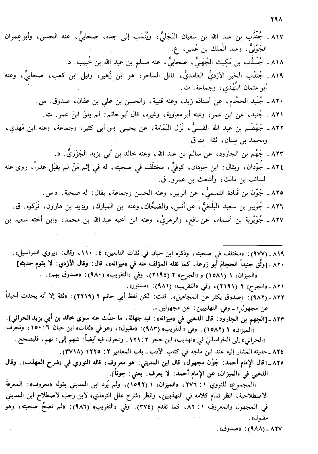 817- جندب بن عبد الله بن سفيان البجلي وينسب إلى جده صحابي عنه الحسن وأبو عمران الجوني وعبد الملك بن عمير ع