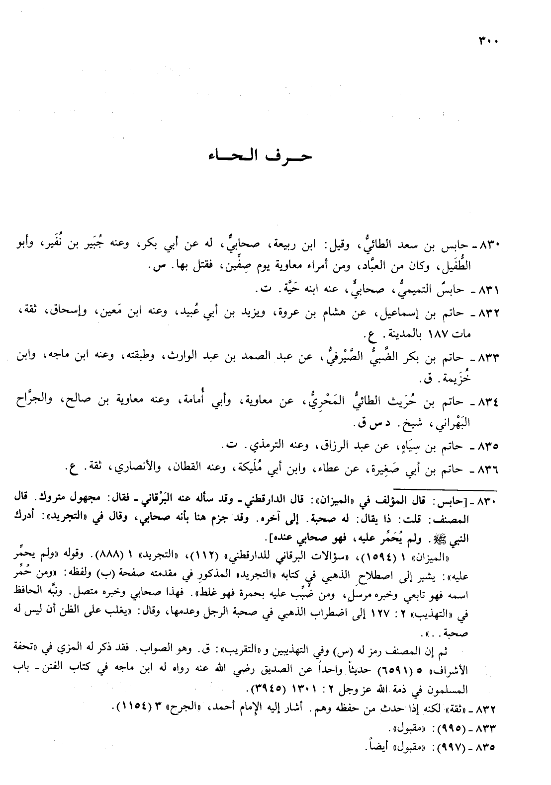 830- حابس بن سعد الطائي وقيل بن ربيعة صحابي له عن أبي بكر وعنه جبير بن نفير وأبو الطفيل وكان من العباد ومن أمراء معاوية يوم صفين فقتل بها س