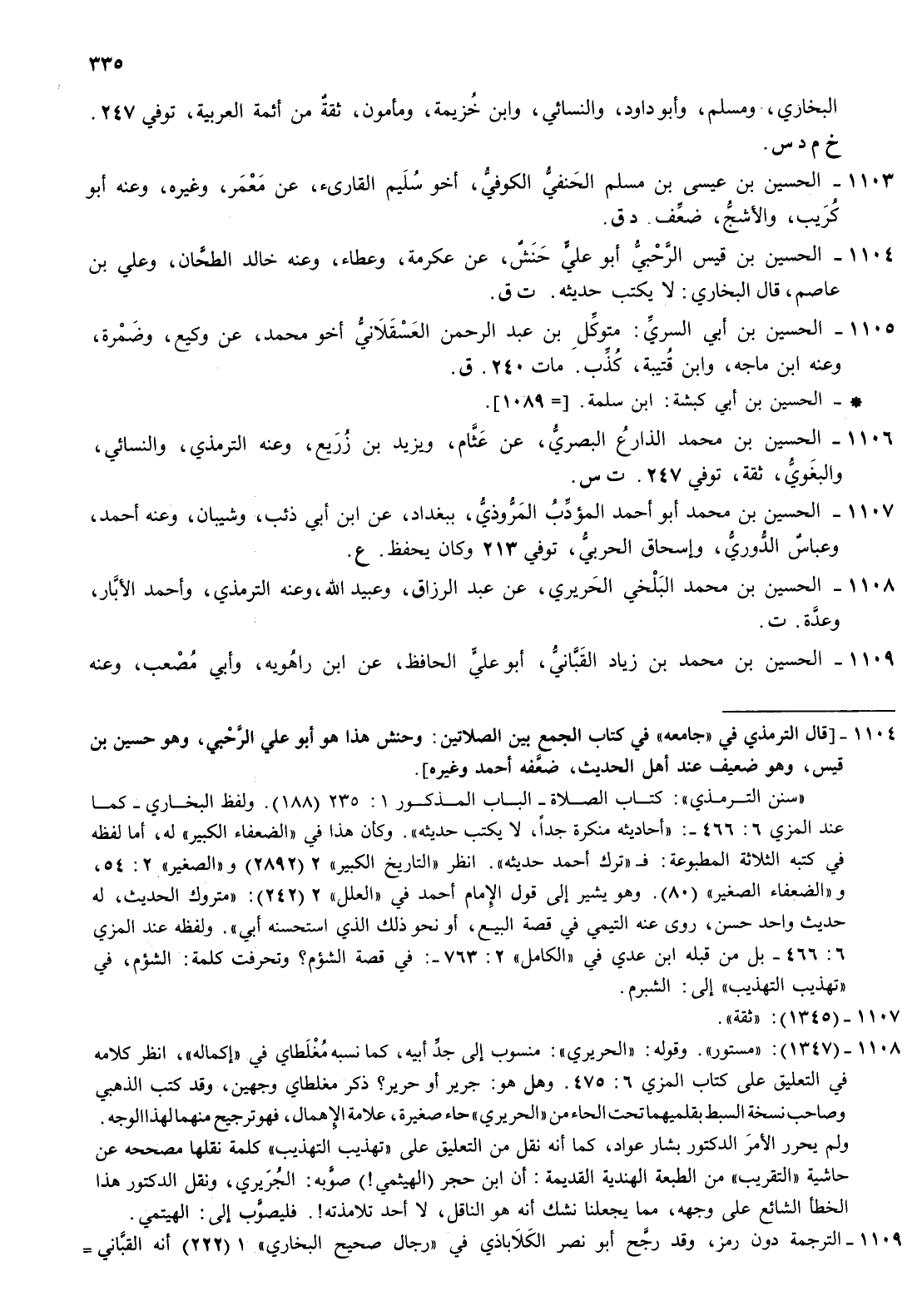 1108- الحسين بن محمد البلخي الحريري عن عبد الرزاق وعبيد الله وعنه الترمذي وأحمد الابار وعدة ت
