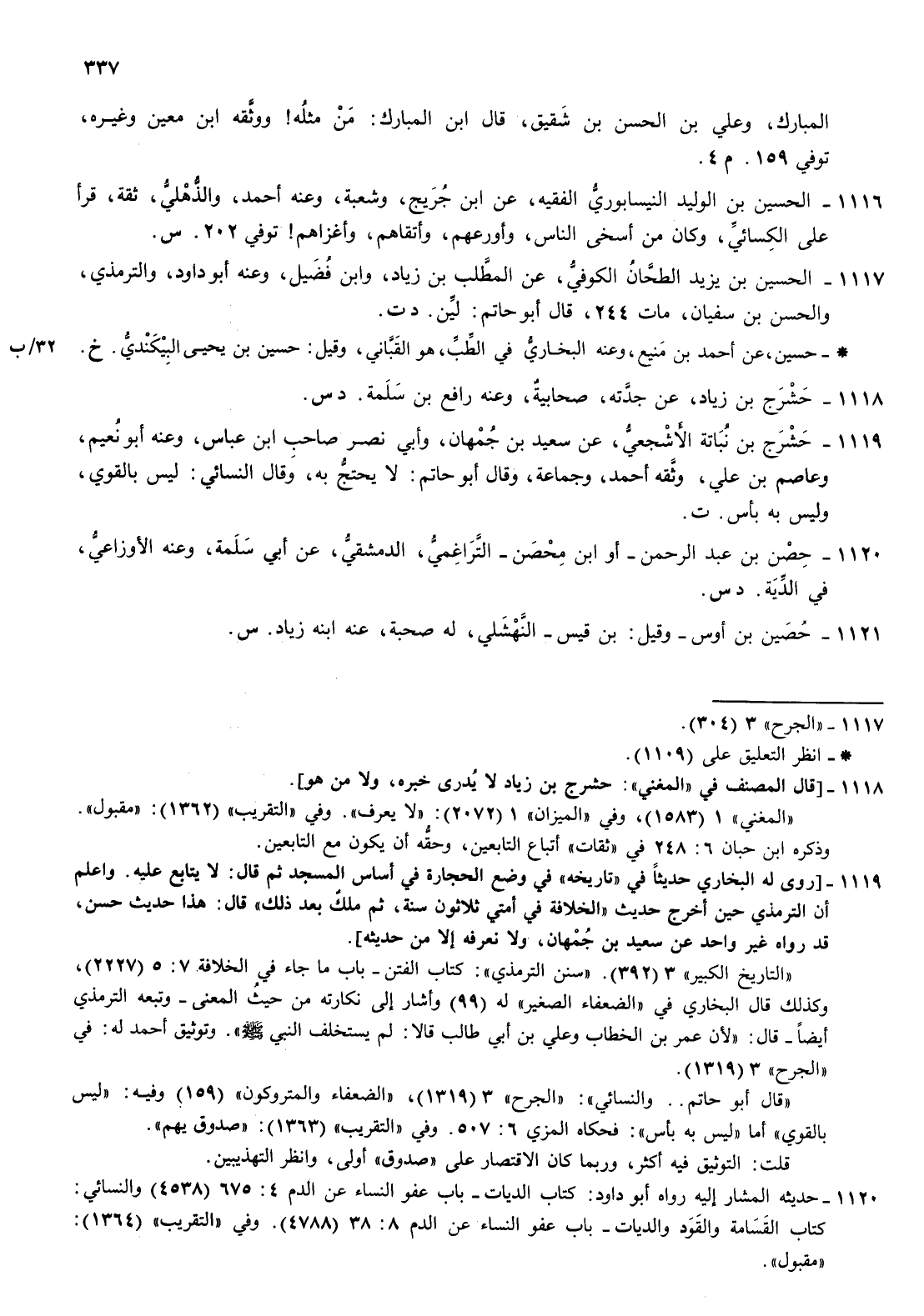 1116- الحسين بن الوليد النيسابوري الفقيه عن بن جريج وشعبة وعنه أحمد والذهلي ثقة قرأ على الكسائي وكان من أسخى الناس وأورعهم وأتقاهم وأغزاهم توفي 202 س