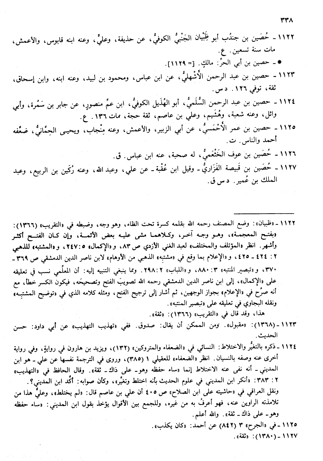 1124- حصين بن عبد الرحمن السلمي أبو الهذيل الكوفي بن عم منصور عن جابر بن سمرة وأبي وائل وعنه شعبة وهشيم وعلي بن عاصم ثقة حجة مات 136 ع