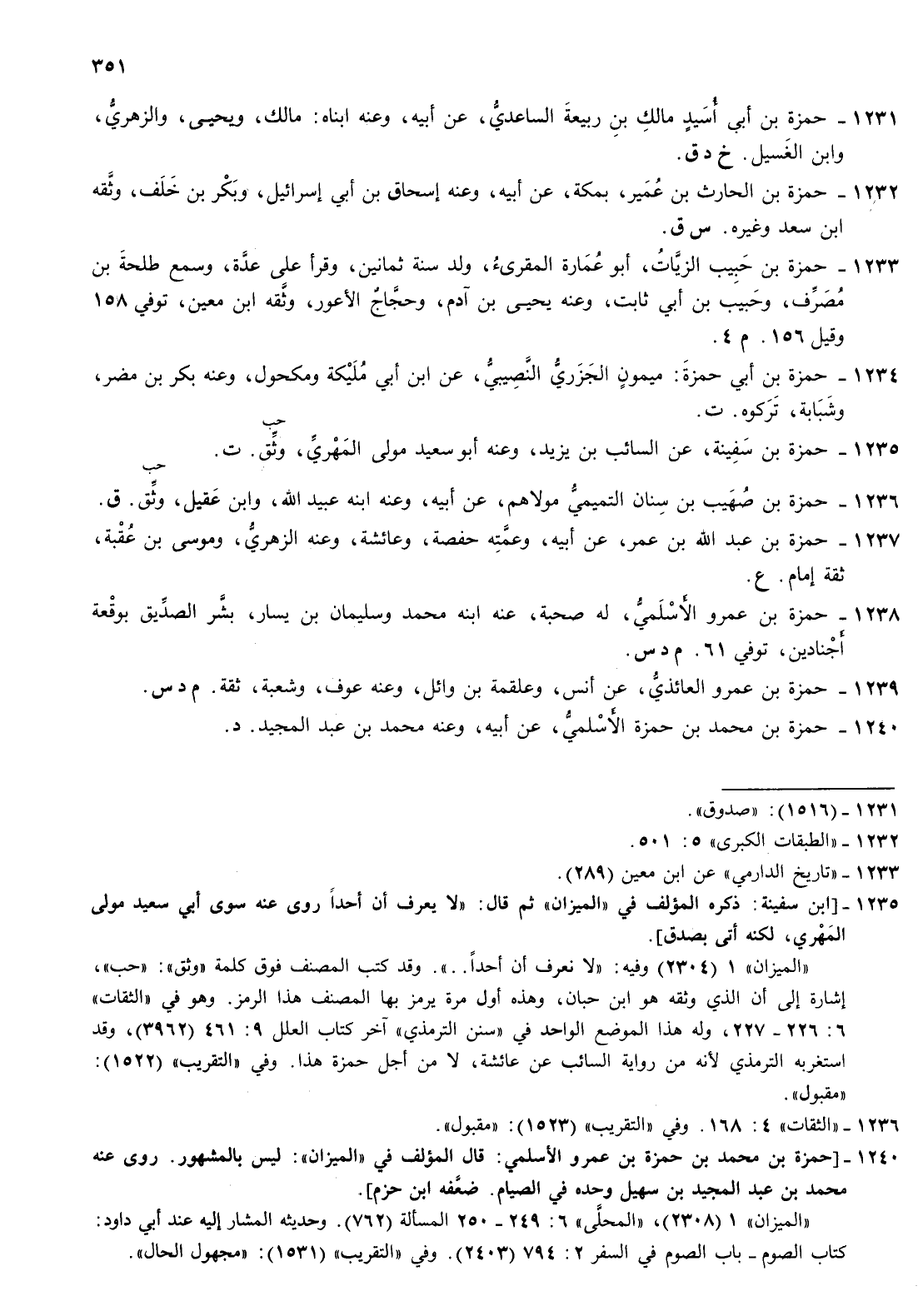 1233- حمزة بن حبيب الزيات أبو عمارة المقرئ ولد سنة ثمانين وقرأ على عدة وسمع طلحة بن مصرف وحبيب بن أبي ثابت وعنه يحيى بن آدم وحجاج الاعور وثقه بن معين توفي 158 وقيل 156 م 4