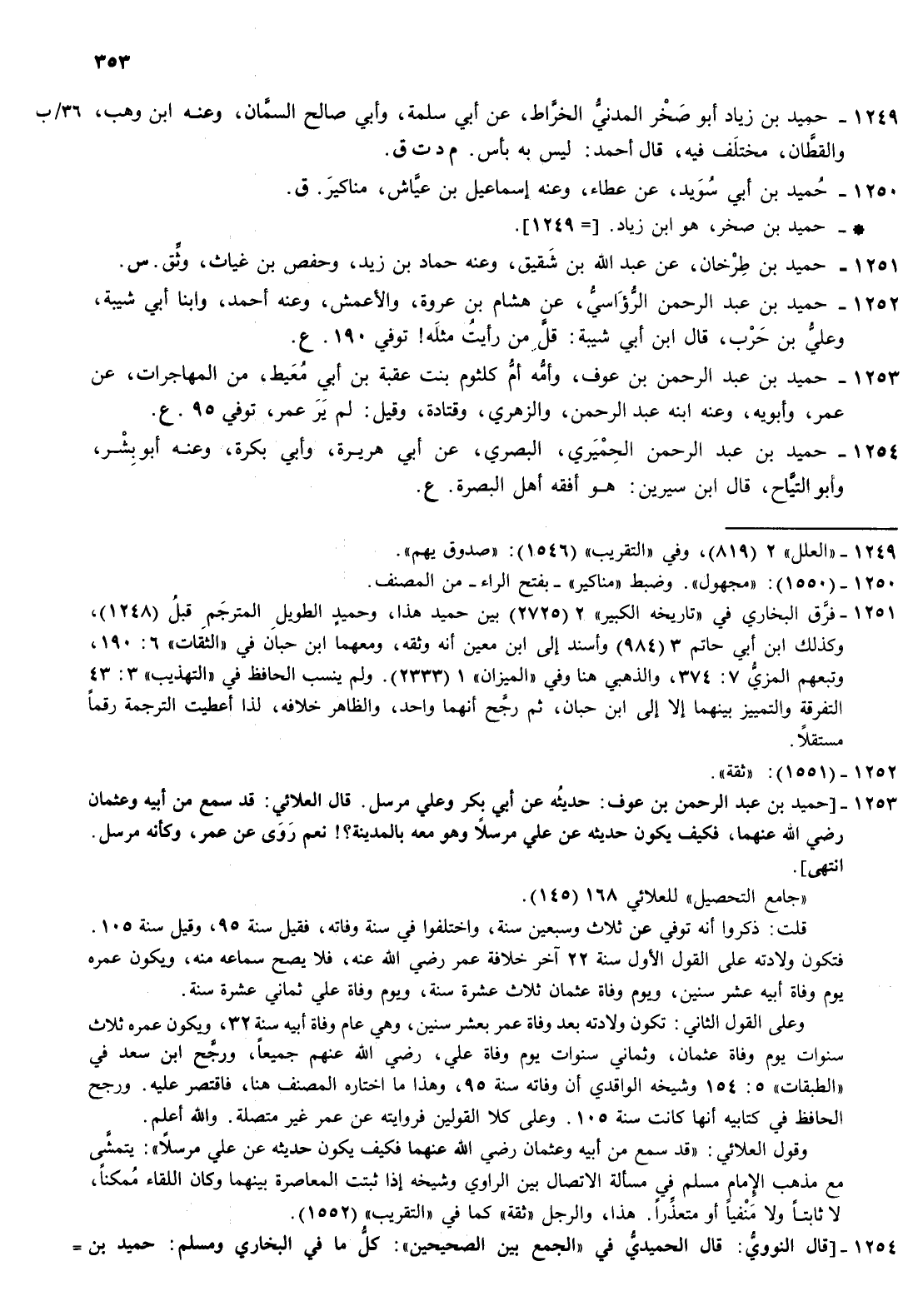 1253- حميد بن عبد الرحمن بن عوف وأمه أم كلثوم بنت عقبة بن أبي معيط من المهاجرات عن عمر وأبويه وعنه ابنه عبد الرحمن والزهري وقتادة وقيل لم ير عمر توفي 95 ع