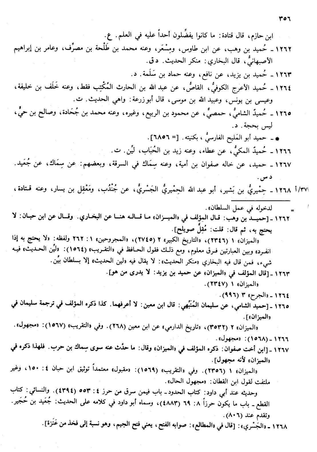1265- حميد الشامي حمصي عن محمود بن الربيع وغيره وعنه محمد بن جحادة وصالح بن حي ليس بحجة د