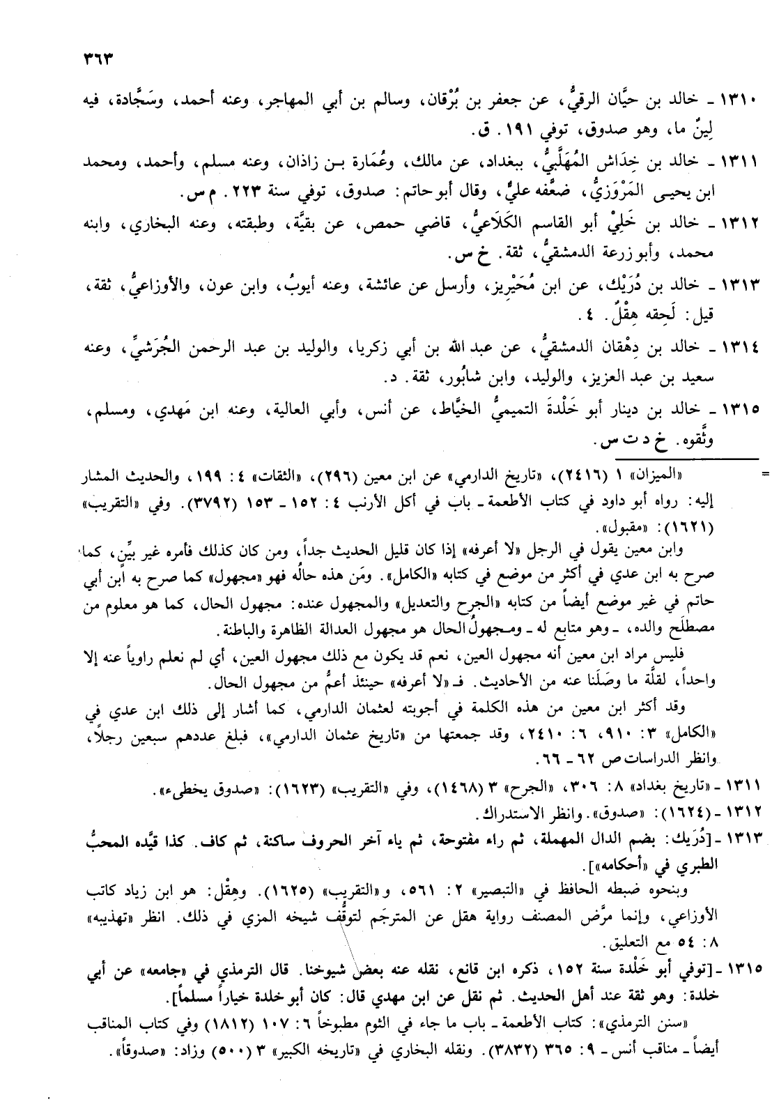 1310- خالد بن حيان الرقي عن جعفر بن برقان وسالم بن أبي المهاجر وعنه أحمد وسجادة فيه لين ما وهو صدوق توفي 191 ق