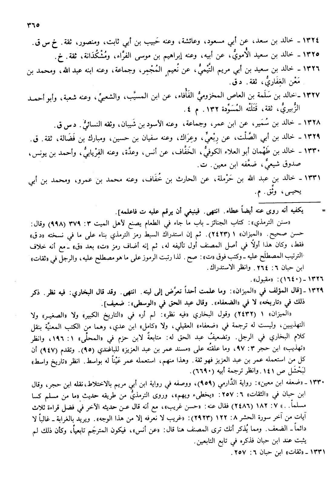 1330- خالد بن طهمان أبو العلاء الكوفي الخفاف عن أنس وعدة وعنه الفريابي وأحمد بن يونس صدوق شيعي ضعفه بن معين ت