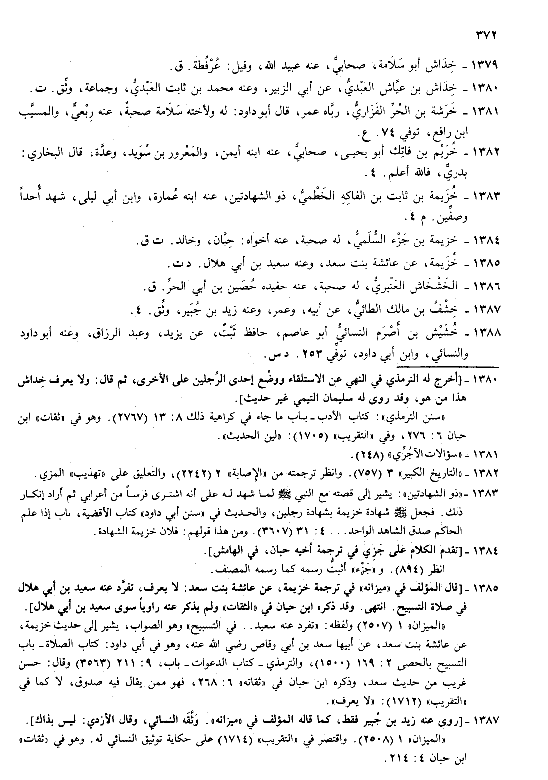 1381- خرشة بن الحر الفزاري رباه عمر قال أبو داود له ولاخته سلامة صحبة عنه ربعي والمسيب بن رافع توفي 74 ع