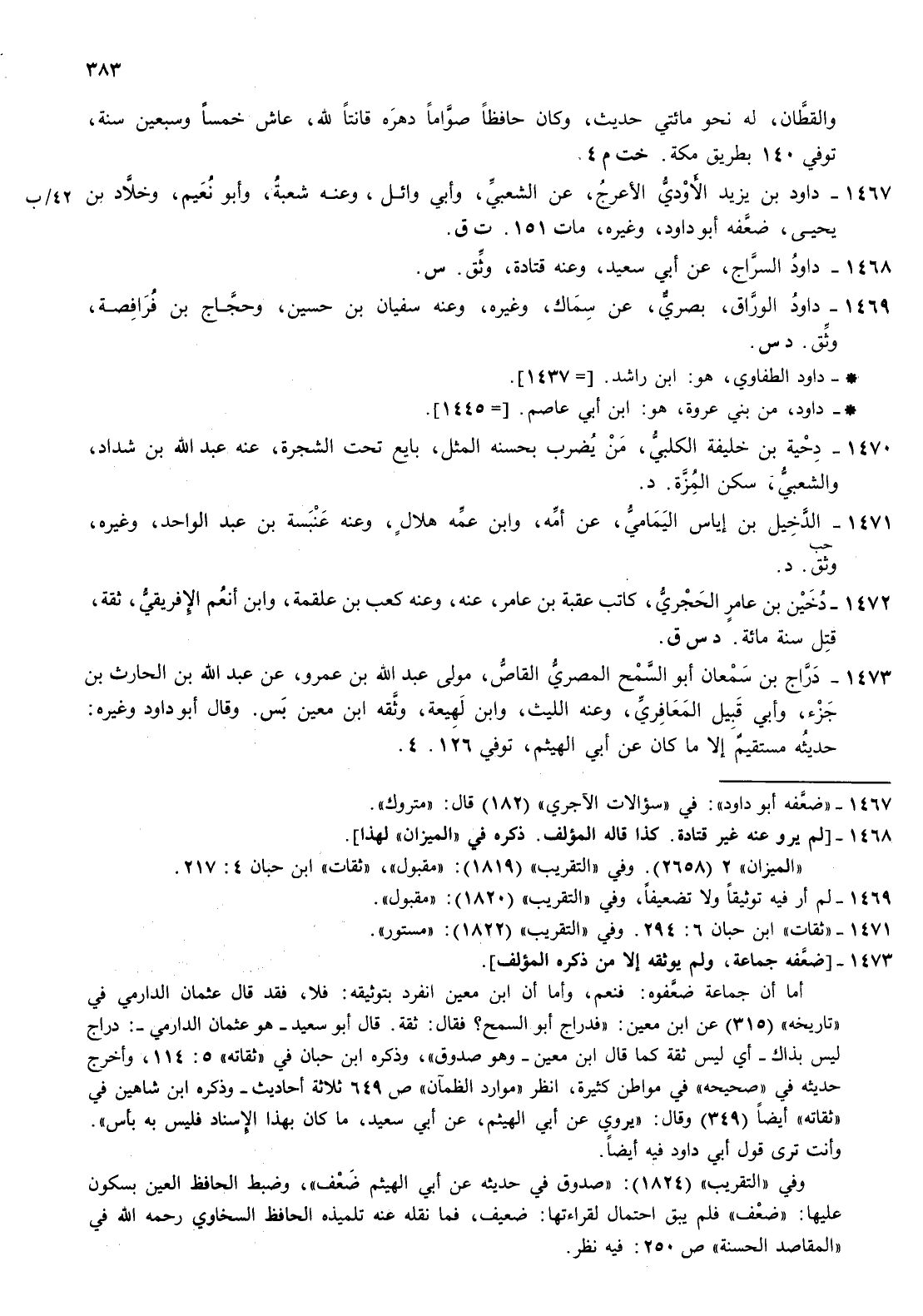 1469- داود الوراق بصري عن سماك وغيره وعنه سفيان بن حسين وحجاج بن فرافصة وثق د س