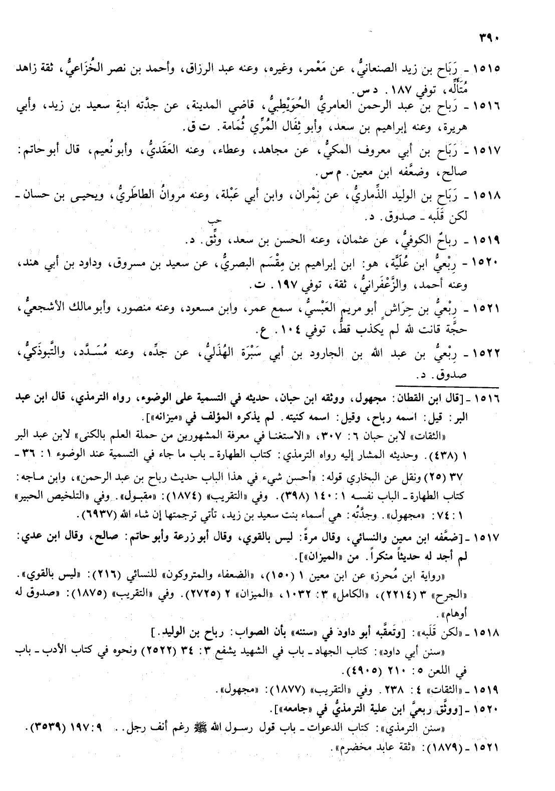 1515- رباح بن زيد الصنعاني عن معمر وغيره وعنه عبد الرزاق وأحمد بن نصر الخزاعي ثقة زاهد متأله توفي 187 د س