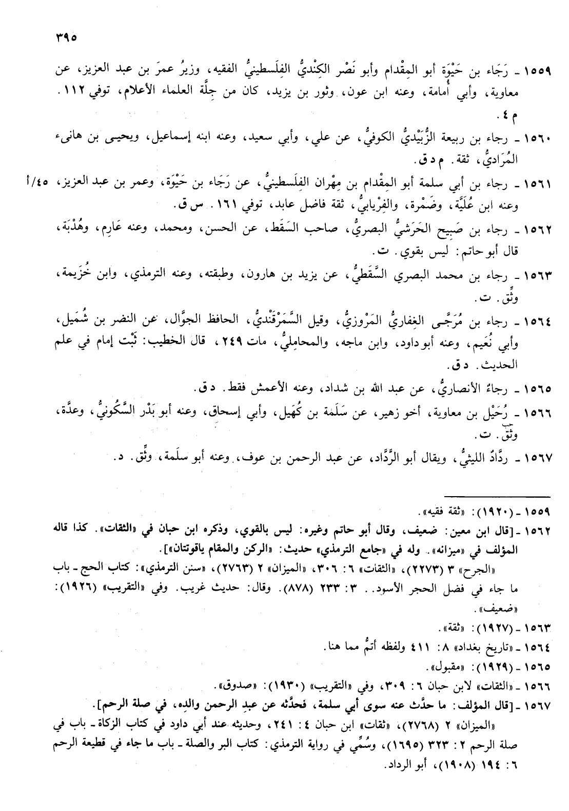1561- رجاء بن أبي سلمة أبو المقدام بن مهران الفلسطيني عن رجاء بن حيوة وعمر بن عبد العزيز وعنه بن علية وضمرة والفريابي ثقة فاضل عابد توفي 161 س ق