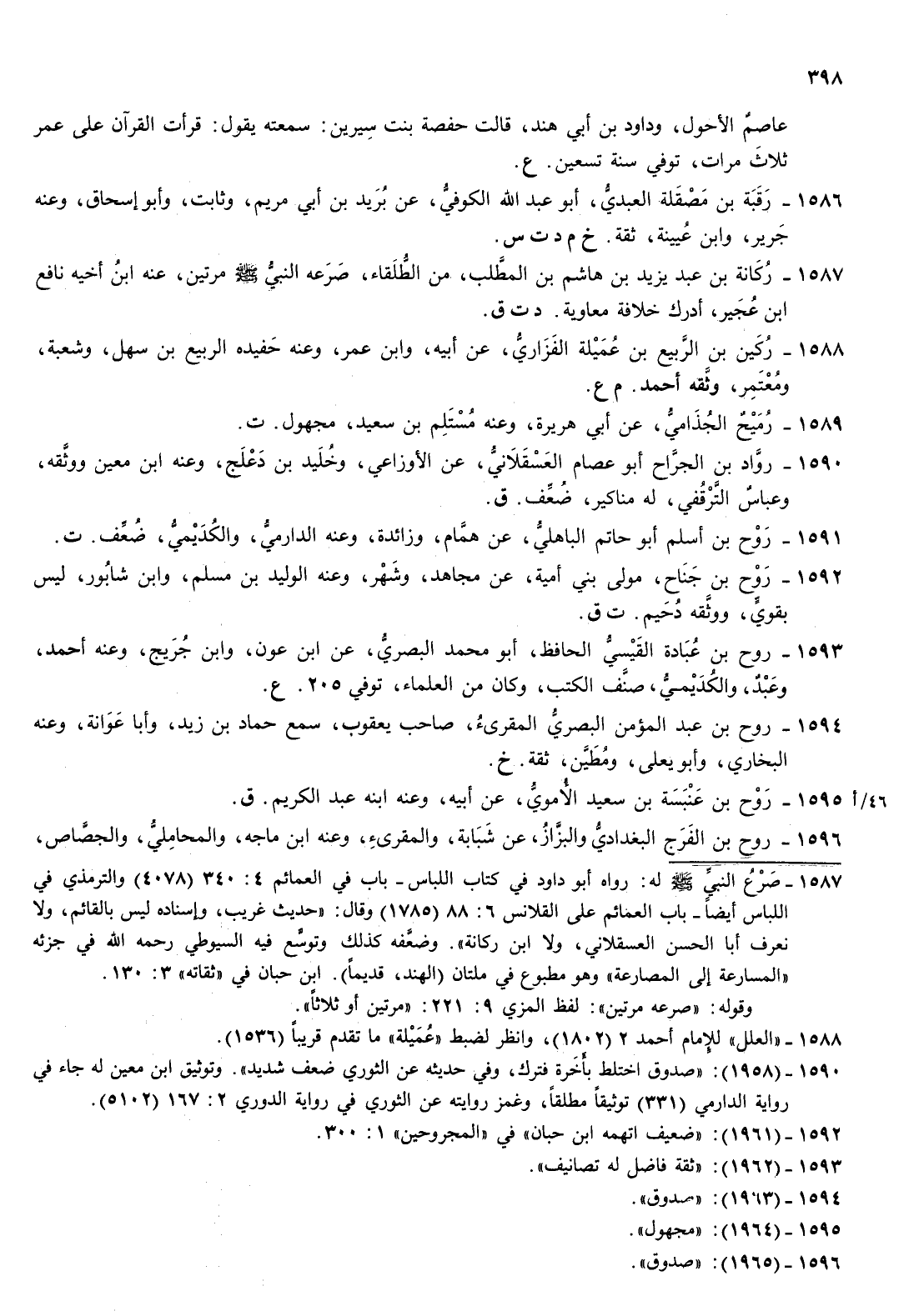 1590- رواد بن الجراح أبو عاصم العسقلاني عن الاوزاعي وخليد بن دعلج وعنه بن معين ووثقه وعباس الترقفي له مناكير ضعف ق
