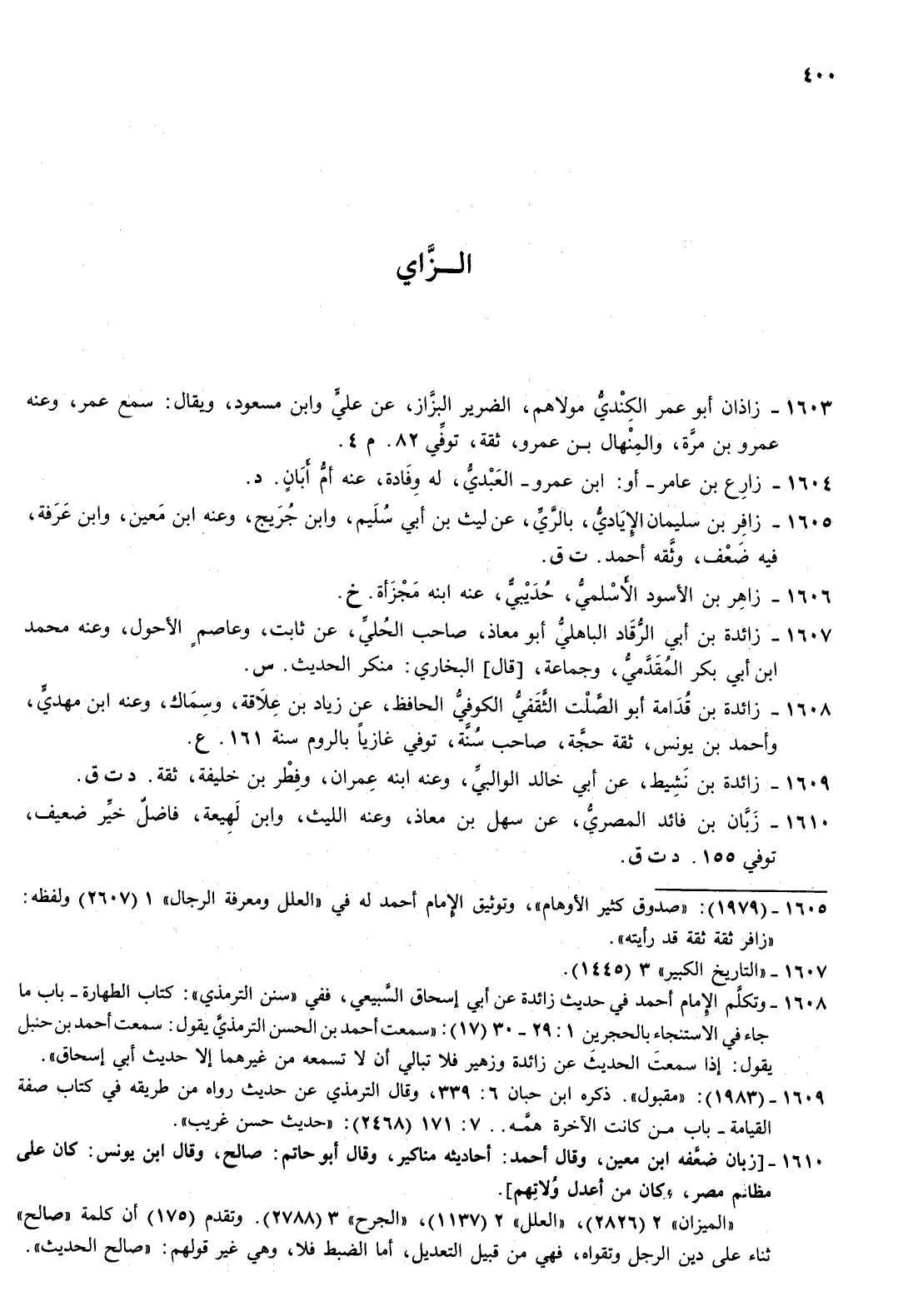 1603- زاذان أبو عمر الكندي مولاهم الضرير البزاز عن علي وابن مسعود ويقال سمع عمر وعنه عمرو بن مرة والمنهال بن عمرو ثقة توفي 82 م 4