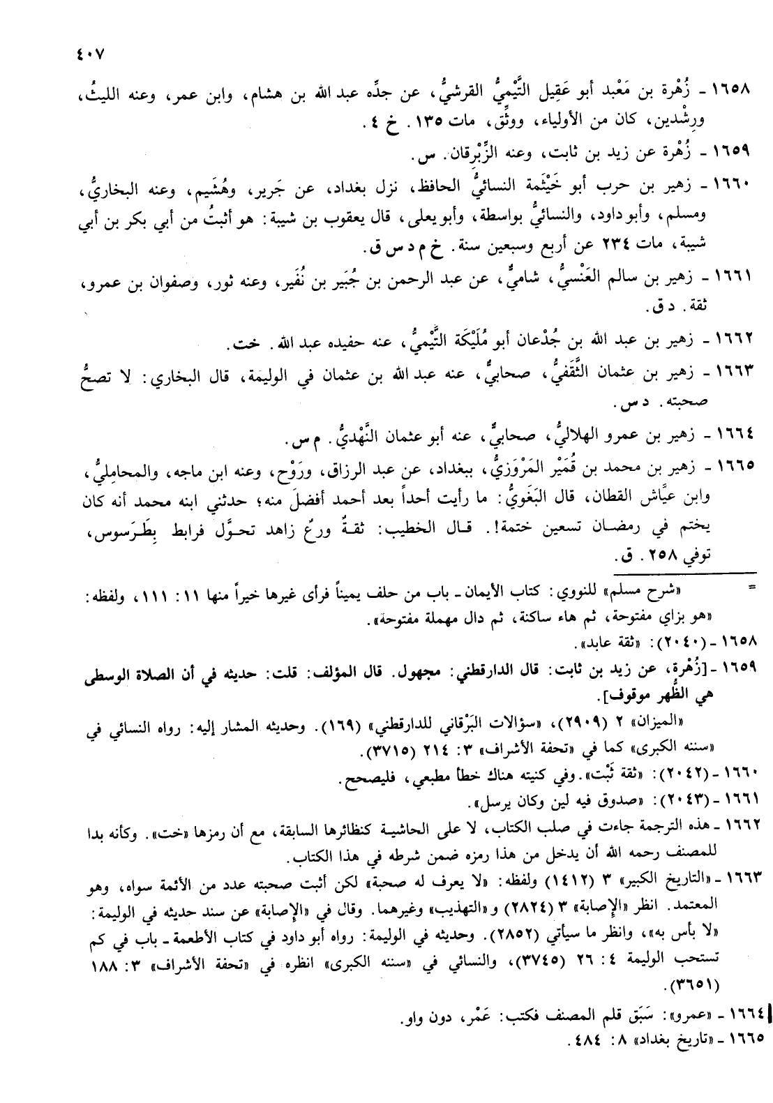 1658- زهرة بن معبد أبو عقيل التيمي القرشي عن جده عبد الله بن هشام وابن عمر وعنه الليث ورشدين كان من الاولياء ووثق مات 135 خ 4