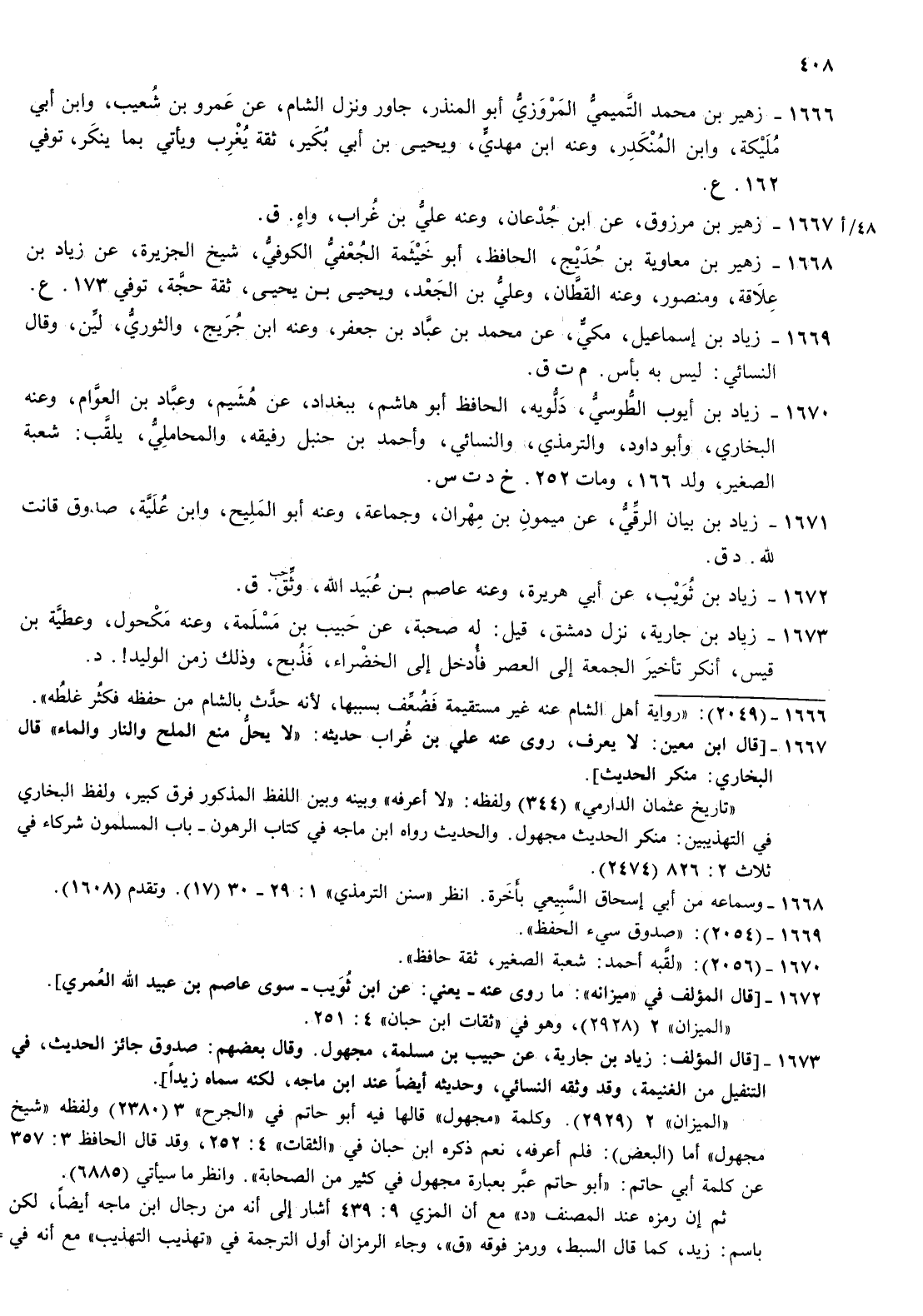 1668- زهير بن معاوية بن حديج الحافظ أبو خيثمة الجعفي الكوفي شيخ الجزيرة عن زياد بن علاقة ومنصور وعنه القطان وعلي بن الجعد ويحيى بن يحيى ثقة حجة توفي 173 ع