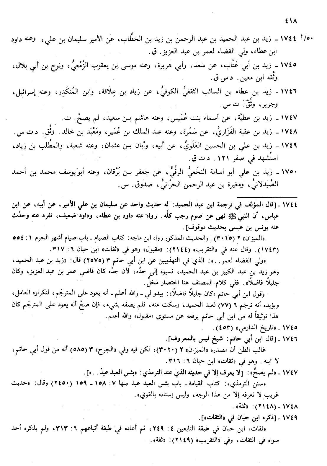 1744- زيد بن عبد الحميد بن عبد الرحمن بن زيد بن الخطاب عن الامير سليمان بن علي وعنه داود بن عطاء ولي القضاء لعمر بن عبد العزيز ق
