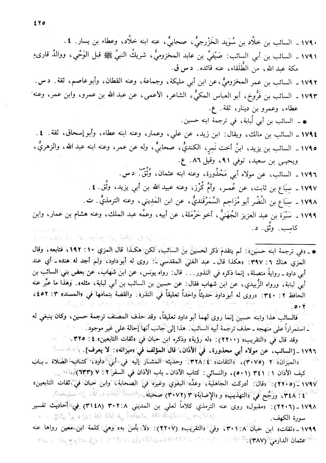 1791- السائب بن أبي السائب صيفي بن عابد المخزومي شريك النبي صلى الله عليه وسلم قبل الوحي ووالد قارئ مكة عبد الله من الطلقاء عنه قائده د س ق