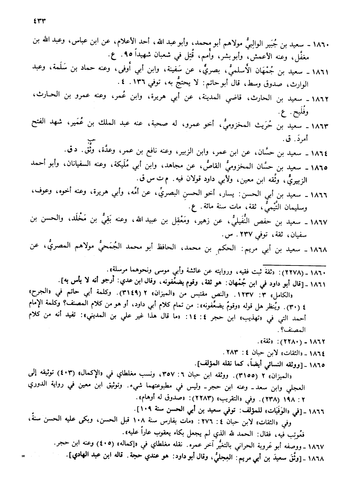 1860- سعيد بن جبير الوالبي مولاهم أبو محمد وأبو عبد الله أحد الاعلام عن بن عباس وعبد الله بن مغفل وعنه الاعمش وأبو بشر وأمم قتل في شعبان شهيدا 95 ع