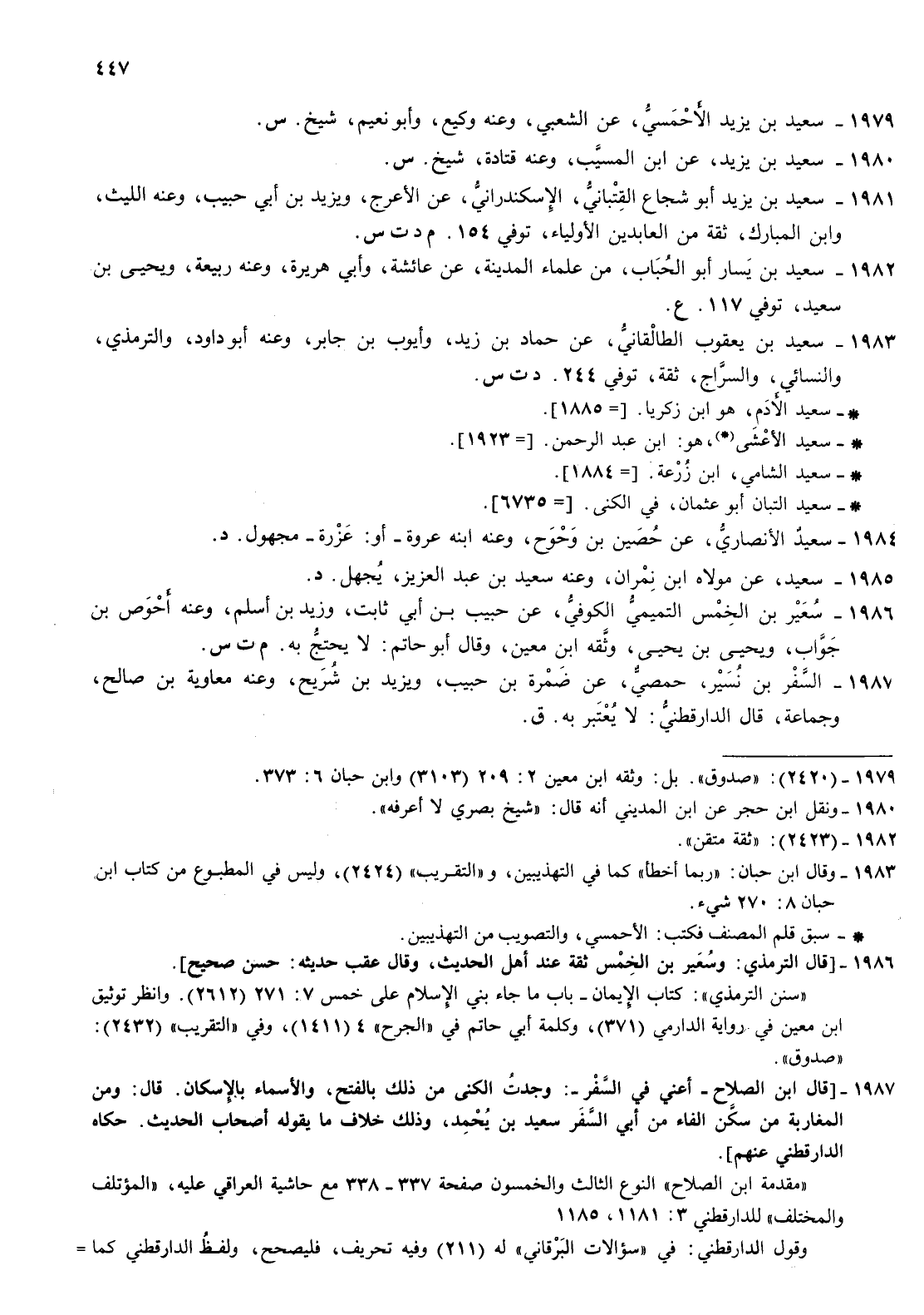 1982- سعيد بن يسار أبو الحباب من علماء المدينة عن عائشة وأبي هريرة وعنه ربيعة ويحيى بن سعيد توفي 117 ع